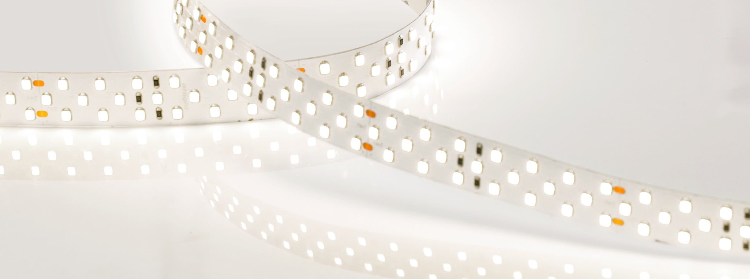 Широкая трехрядная лента LUX шириной 19 мм с очень высоким индексом цветопередачи CRI>98 и высокой световой эффективностью. Светодиоды SMD 2835 (252 шт/м) с дневным белым цветом свечения (3800–4200 К). Мощность 27 Вт/м, напряжение питания 24 В. Минимальный отрезок 83.33 мм (21 светодиод). Может использоваться с любыми профилями. Встроенные линии света для основного освещения. Создание накладных и подвесных светильников из алюминиевого профиля.