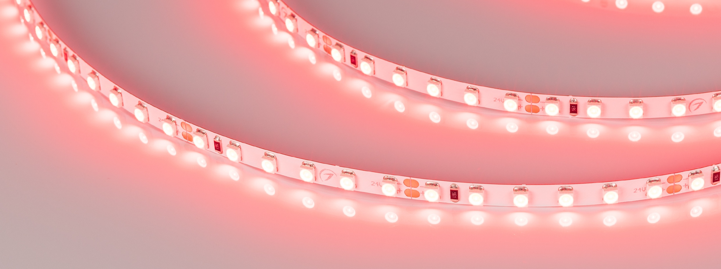 Узкая светодиодная лента 5 мм серии LUX с питанием 24 В и мощностью 9.6 Вт/м. Светодиоды 2х SMD 3528 красного цвета свечения с плотностью расстановки 120 шт/м. Степень пылевлагозащиты IP20. Для создания качественной декоративной подсветки в помещениях: подсветка лестниц, ступеней, плинтусов, ниш, мебельных полок, натяжных потолков и витражей. Может использоваться для создания световой рекламы: подсветка лайтбоксов, вывесок, букв, витрин. Обязательна установка на профиль. Идеально подходит для установки в узкий паз.