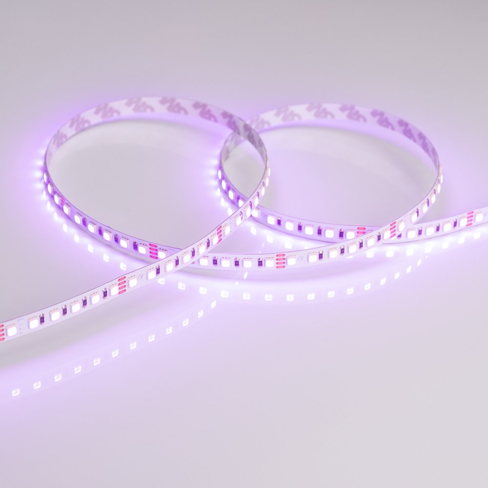 Мультицветная лента LUX шириной 8 мм с RGB-светодиодами SMD 3838 (120 шт/м). Мощность 11 Вт/м, напряжение питания 24 В. Плотная установка светодиодов позволяет скрыть видимость точек светодиодов в профиле небольшой глубины с матовым экраном. Управляется RGB-контроллером. Мультицветная подсветка ниш, декора. Световые линии с изменяемым цветом свечения. Минимальный отрезок 50 мм (6 светодиодов).