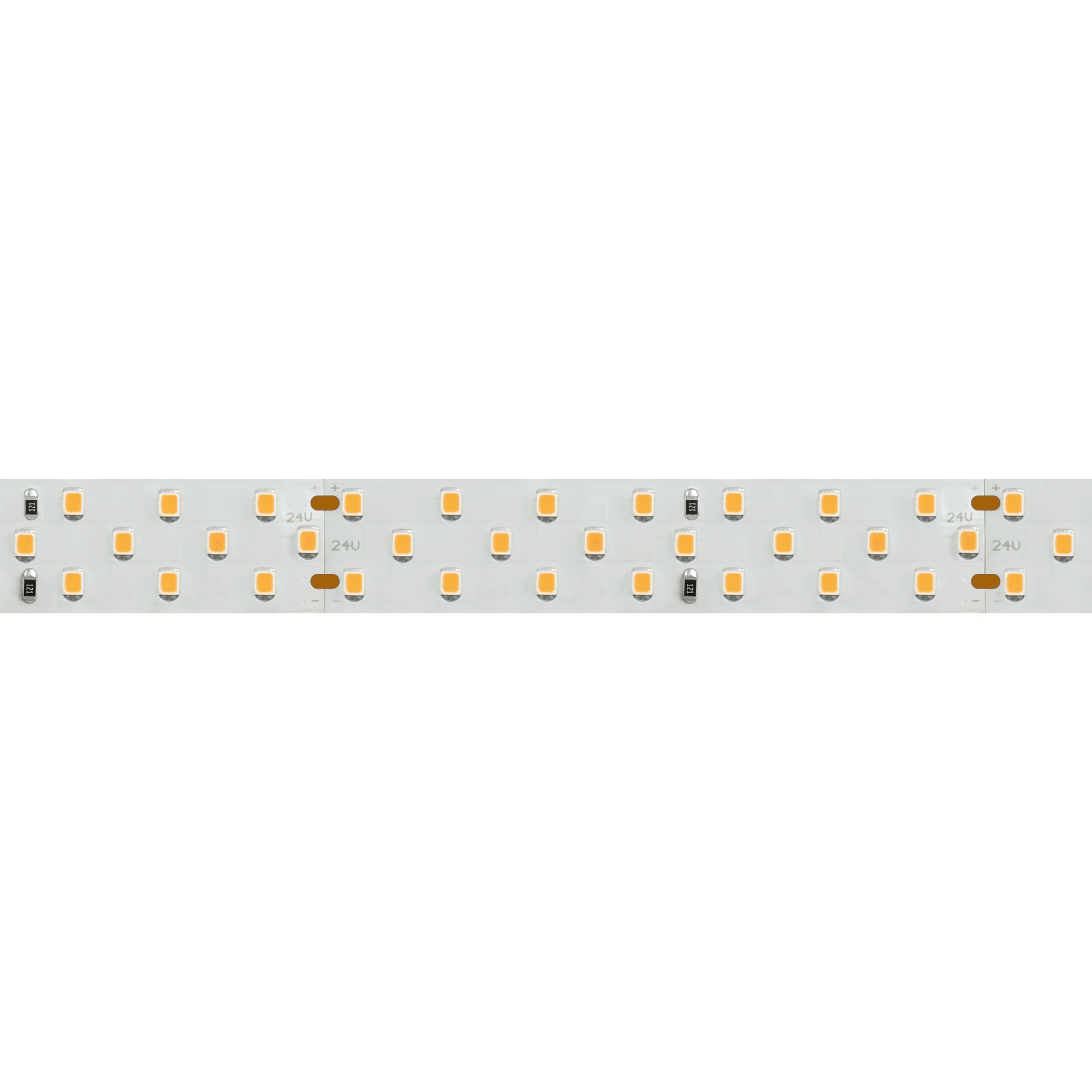 Широкая трехрядная лента LUX шириной 19 мм с очень высоким индексом цветопередачи CRI>98 и высокой световой эффективностью. Светодиоды SMD 2835 (252 шт/м) с теплым белым цветом свечения (2600–2800 К). Мощность 27 Вт/м, напряжение питания 24 В. Минимальный отрезок 83.33 мм (21 светодиод). Может использоваться с любыми профилями. Встроенные линии света для основного освещения. Создание накладных и подвесных светильников из алюминиевого профиля.