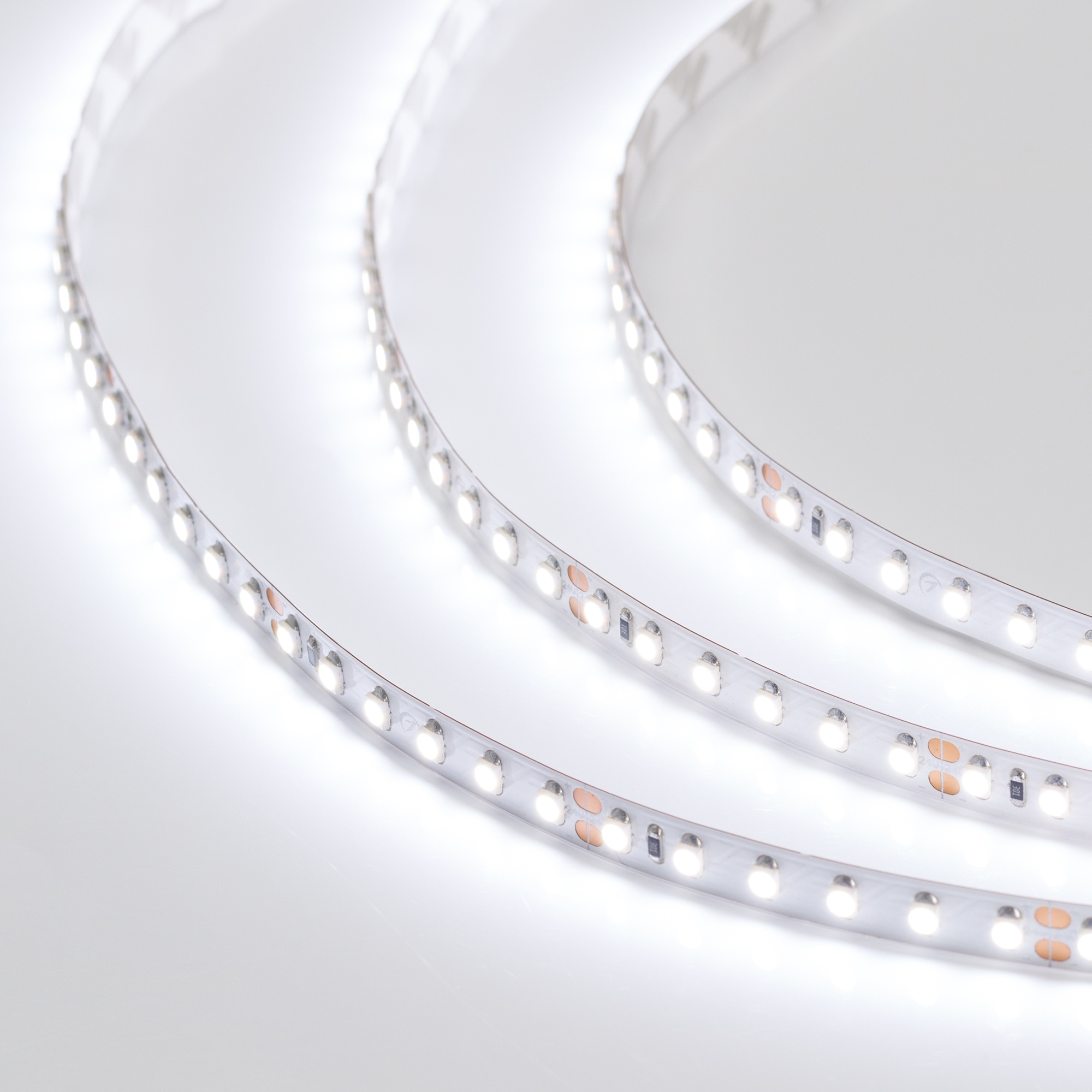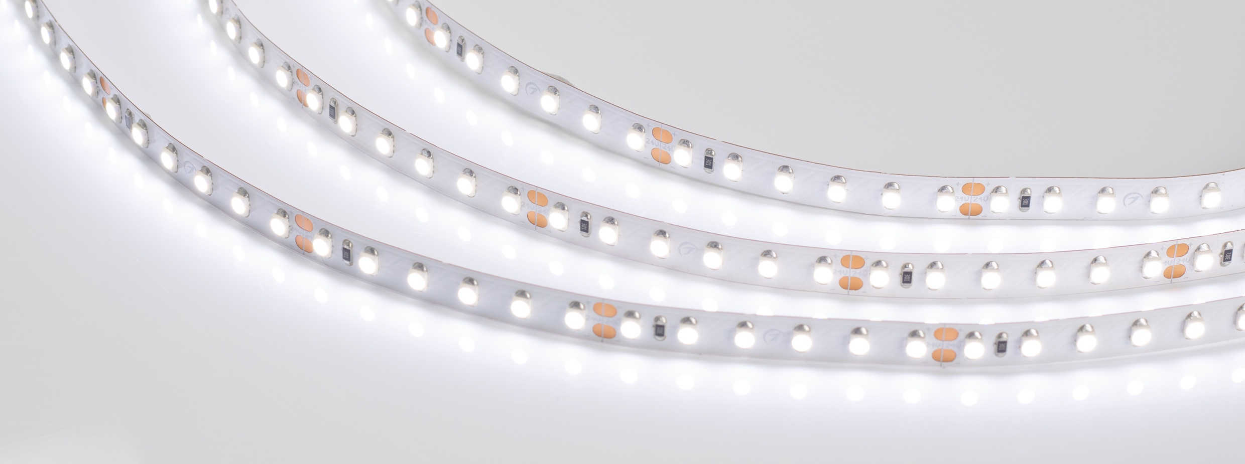 Светодиодная лента серии LUX шириной 8 мм. Питание 24 В и мощность 9.6 Вт/м. Светодиоды 2x SMD 3528 белого цвета свечения (5800 - 6500 К) с плотностью расстановки 120 шт/м. Индекс цветопередачи CRI>85 и степень пылевлагозащиты IP20. Для создания качественной декоративной подсветки в помещениях: подсветка лестниц, ступеней, плинтусов, ниш, мебельных полок, натяжных потолков и витражей. Может использоваться для создания световой рекламы: подсветка лайтбоксов, вывесок, букв, витрин. Обязательна установка на профиль.
