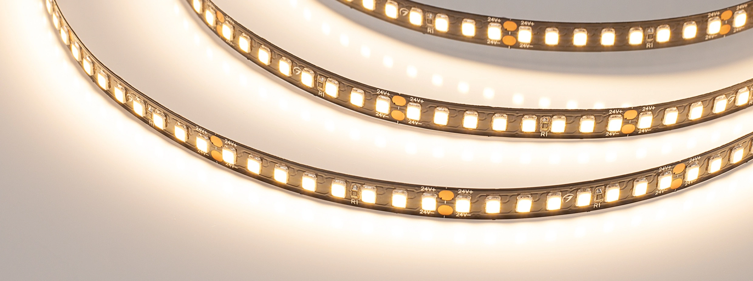 Светодиодная лента шириной 8 мм и мощностью 12 Вт/м. Светодиоды SMD 2835 (160 шт/м) теплого белого цвета свечения (2900–3100 К). Высокая световая эффективность 150 лм/Вт. Напряжение питания 24 В. Минимальный отрезок 50 мм (8 светодиодов). Для основного и декоративного освещения, подсветки рекламных конструкций и витрин.