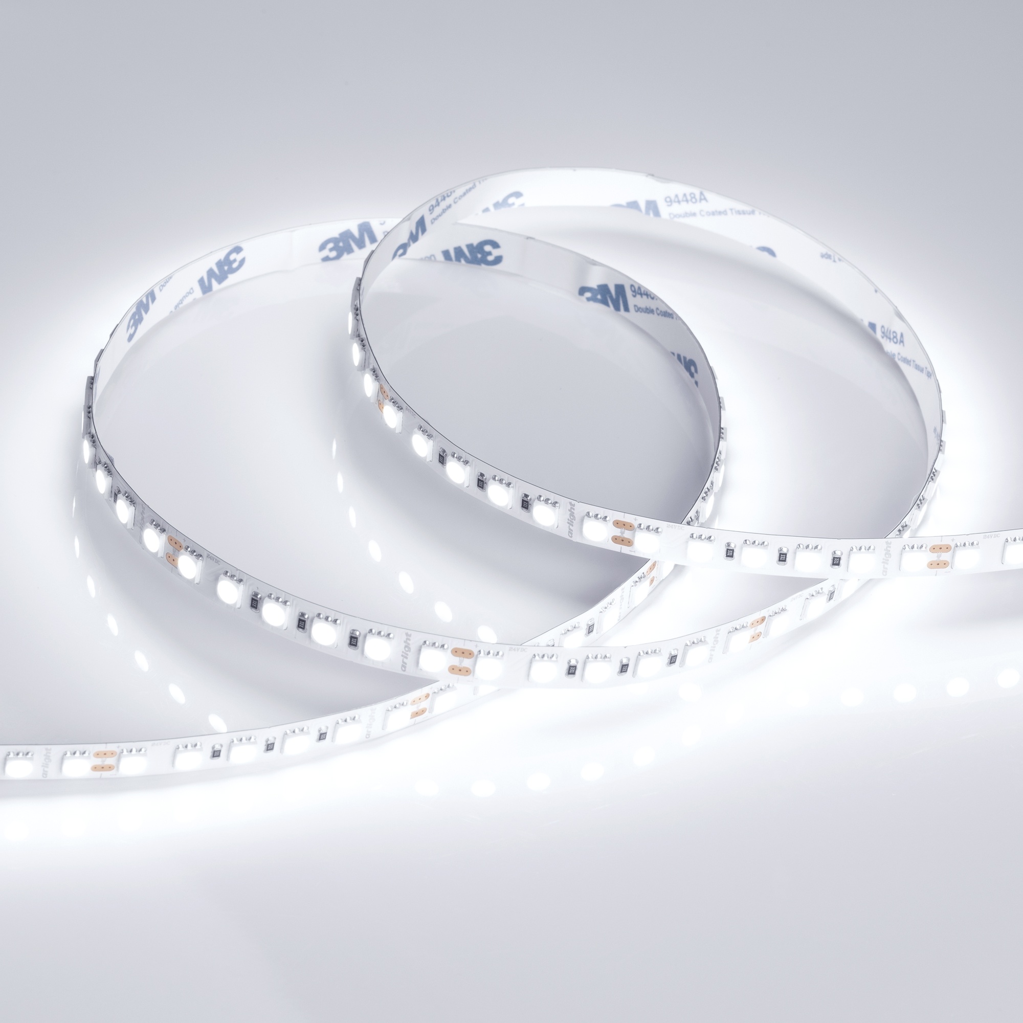 Светодиодная лента LUX шириной 10 мм с высоким индексом цветопередачи (CRI>90). Светодиоды SMD 5060 (96 шт/м) белого цвета свечения (5500–6000 К). Мощность 23 Вт/м, напряжение питания 24 В. Минимальный отрезок 62.5 мм (6 светодиодов). Декоративная подсветка интерьеров, потолочных ниш, рабочих зон кухни, мебели. Подсветка рекламных конструкций и витрин.