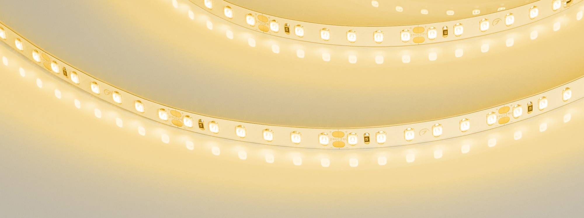 Универсальная светодиодная лента RT серии A120 шириной 8 мм, мощностью 9.6 Вт/м. Напряжение питания 24 В. Светодиоды SMD 2835, 120 шт/м, цвет свечения желтый. Минимальный отрезок 50 мм (6 светодиодов). Универсальное применение для организации декоративной подсветки любых жилых и коммерческих помещений, подсветки интерьеров, потолочных ниш, лестниц, ступеней, полок, натяжных потолков, витражей. Создание световой рекламы: подсветка лайтбоксов, вывесок, букв, витрин. Рекомендуется установка на профиль.