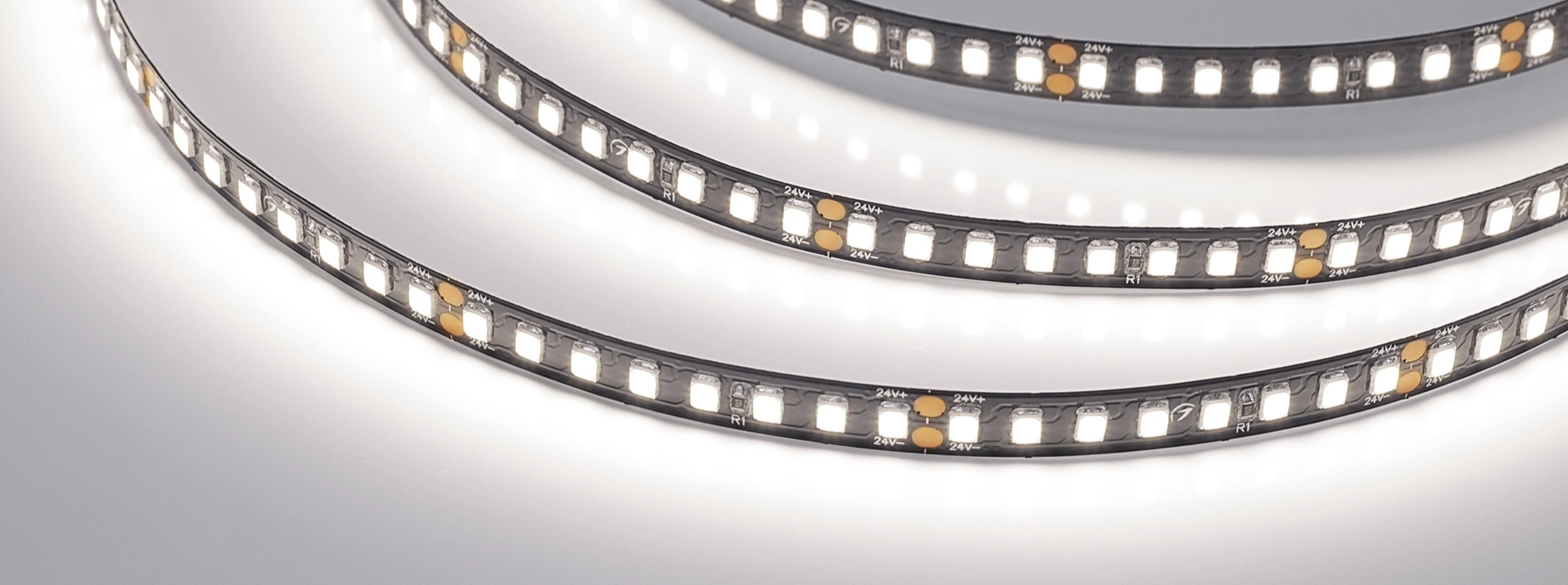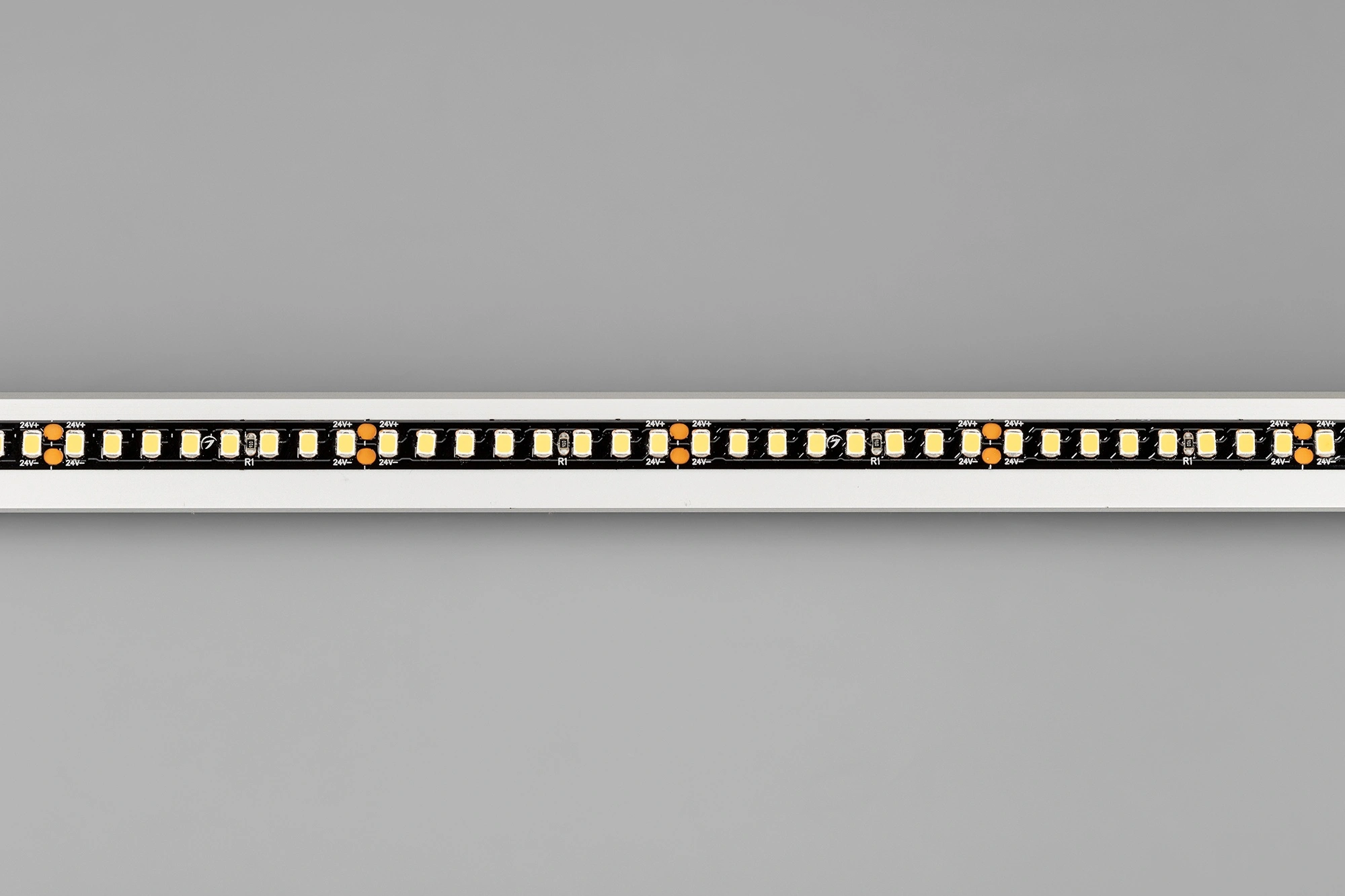 Высокоэффективная светодиодная лента RT серии A160 на черной плате. Светодиоды SMD 2835, 160 шт/м, дневного цвета свечения (4000K). Напряжение питания 24 В, мощность 12 Вт/м, ширина 8 мм. Применяется для создания декоративных ярких линий интерьеров, потолочных ниш. Индекс цветопередачи CRI>85, высокая световая эффективность (150 лм/Вт) позволяет применять ленту для энергоэффективного освещения любых жилых и коммерческих помещений. Применяется для создания светильников на основе алюминиевого профиля. Для обеспечения теплоотвода обязательна установка на алюминиевый профиль.