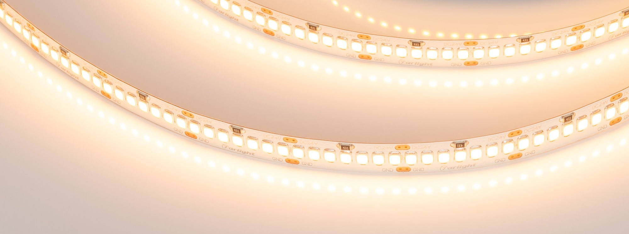 Светодиодная лента RT серии A252 шириной 10 мм, мощность 11 Вт/м. Светодиоды SMD 2835, 252 шт/м, теплого цвета свечения (2400K). Индекс цветопередачи CRI>85. Плотная установка светодиодов позволяет убрать световые точки при установке в алюминиевый профиль небольшой глубины с матовым рассеивателем. Световая эффективность 125 лм/Вт. Применяется для создания ярких декоративных линий, создания линейных светильников на основе алюминиевого профиля.