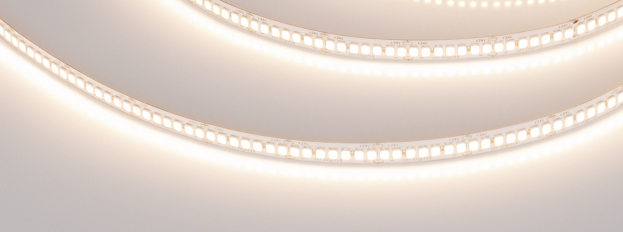 Светодиодная лента RT серии A280 шириной 8 мм, мощностью 10 Вт/м. Светодиоды SMD 2835, 280 шт/м, теплого цвета свечения (3000K). Напряжение питания 24 В. Минимальный отрезок 25 мм (7 светодиодов). Применяется для декоративной подсветки интерьеров, потолочных ниш, рабочих зон кухни, мебели. Высокая плотность светодиодов позволяет избегать световых точек при установке в профиле небольшой глубины с матовым экраном. Подсветка рекламных конструкций и витрин.