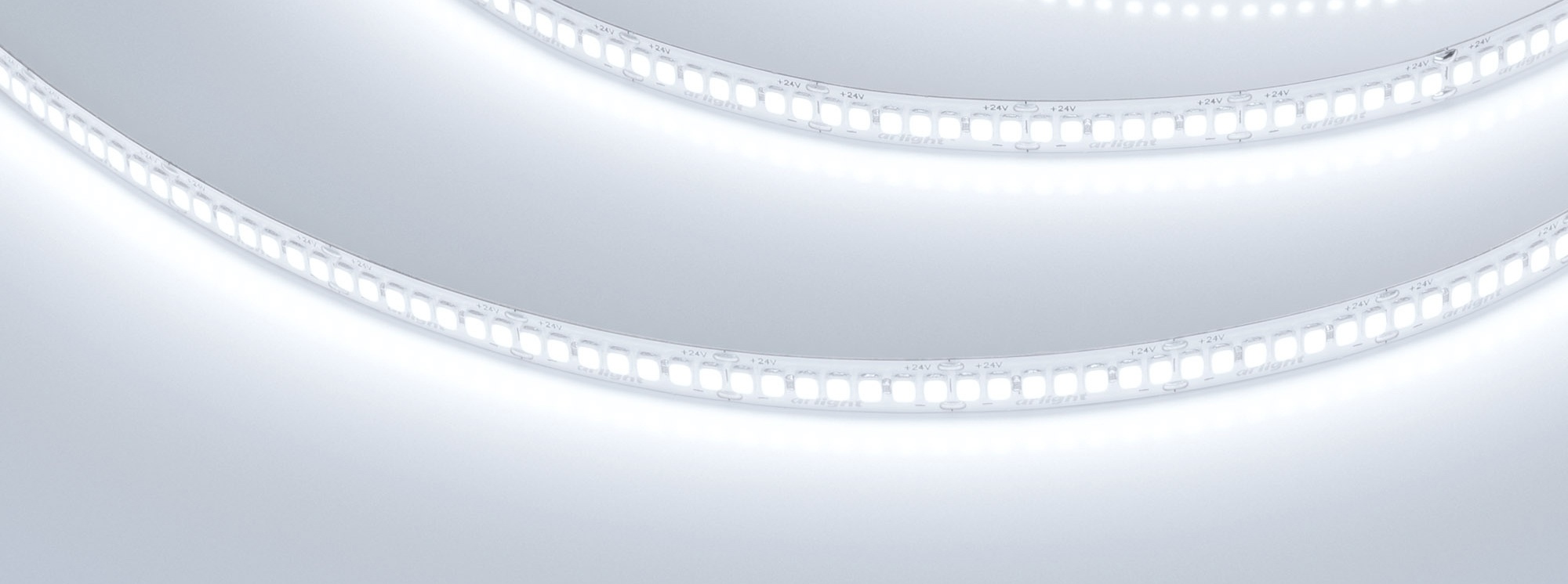 Светодиодная лента RT серии A280 шириной 8 мм, мощностью 10 Вт/м. Светодиоды SMD 2835, 280 шт/м, белого цвета свечения (6000K). Напряжение питания 24 В. Минимальный отрезок 25 мм (7 светодиодов). Применяется для декоративной подсветки интерьеров, потолочных ниш, рабочих зон кухни, мебели. Высокая плотность светодиодов позволяет избегать световых точек при установке в профиле небольшой глубины с матовым экраном. Подсветка рекламных конструкций и витрин.