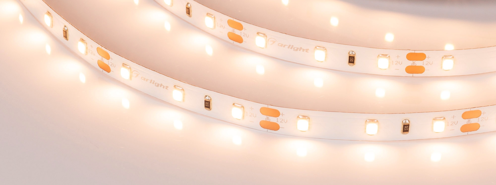 Универсальная светодиодная лента RT серии A60 шириной 8 мм, мощностью 4.8 Вт/м. Напряжение питания 12 В. Светодиоды SMD 2835, 60 шт/м, теплого цвета свечения (2700K). Индекс цветопередачи CRI>85. Минимальный отрезок 50 мм (3 светодиода). Универсальное применение для организации декоративной подсветки любых жилых и коммерческих помещений, подсветки интерьеров, потолочных ниш, лестниц, ступеней, полок, натяжных потолков, витражей, рекламных конструкций.