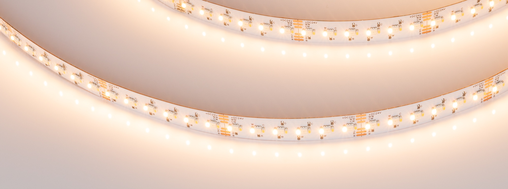 Светодиодная лента RT серии AM360, светодиоды 2835+2210, 360 светодиодов на метр, мощность 24 Вт/м. Предназначена для мультицветной декоративной подсветки интерьера, торцевой подсветки, подсветки стеклянных полок, элементов мебели, ниш, декора. Используется для рекламных конструкций и витрин. Сочетание белых MIX и RGB светодиодов позволяет создавать подсветку интерьера с широким выбором свечений.
