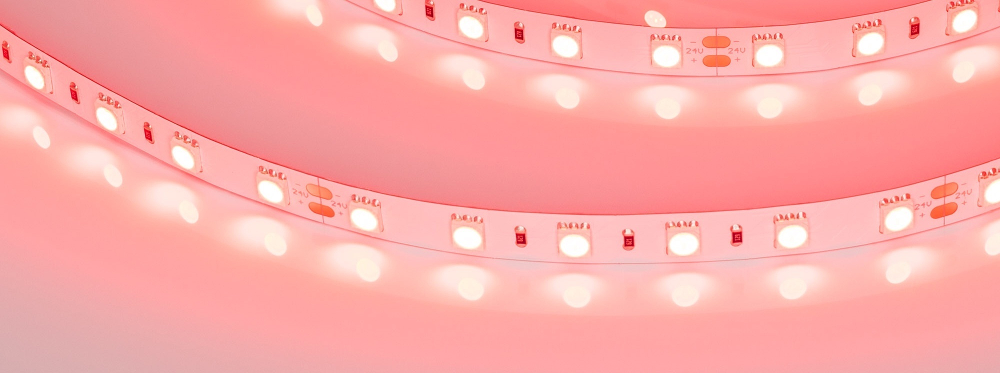 Светодиодная лента RT серии B60 шириной 10 мм, мощностью 14.4 Вт/м. Светодиоды SMD 5060, 60 шт/м, красного цвета свечения. Напряжение питания 12 В. Минимальный отрезок 50 мм (3 светодиода). Широкий шаг между светодиодами обеспечивает эффект видимых световых точек. Применяется для декоративной подсветки интерьеров, рабочих зон кухни, рекламных конструкций и витрин. Обязательна установка на алюминиевый профиль.