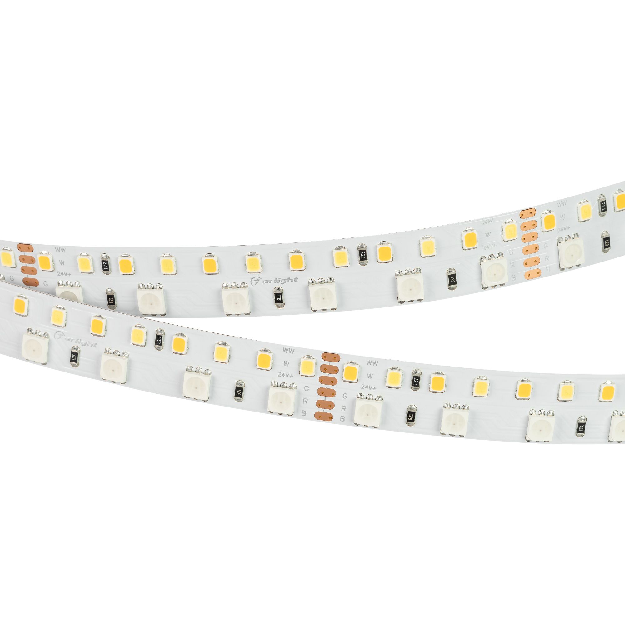 Мультицветная светодиодная лента RT серии BA180 шириной 15 мм, мощностью 28.8 Вт/м. Светодиоды 5060 и 2835, 180 шт/м. Цвет свечения RGB + MIX (теплый 2700K + белый 6000K). Предназначены для мультицветной подсветки интерьеров. Пятиканальная лента с шестью проводами для подключения, управляется RGBW-MIX контроллером. Обязательна установка на профиль.
