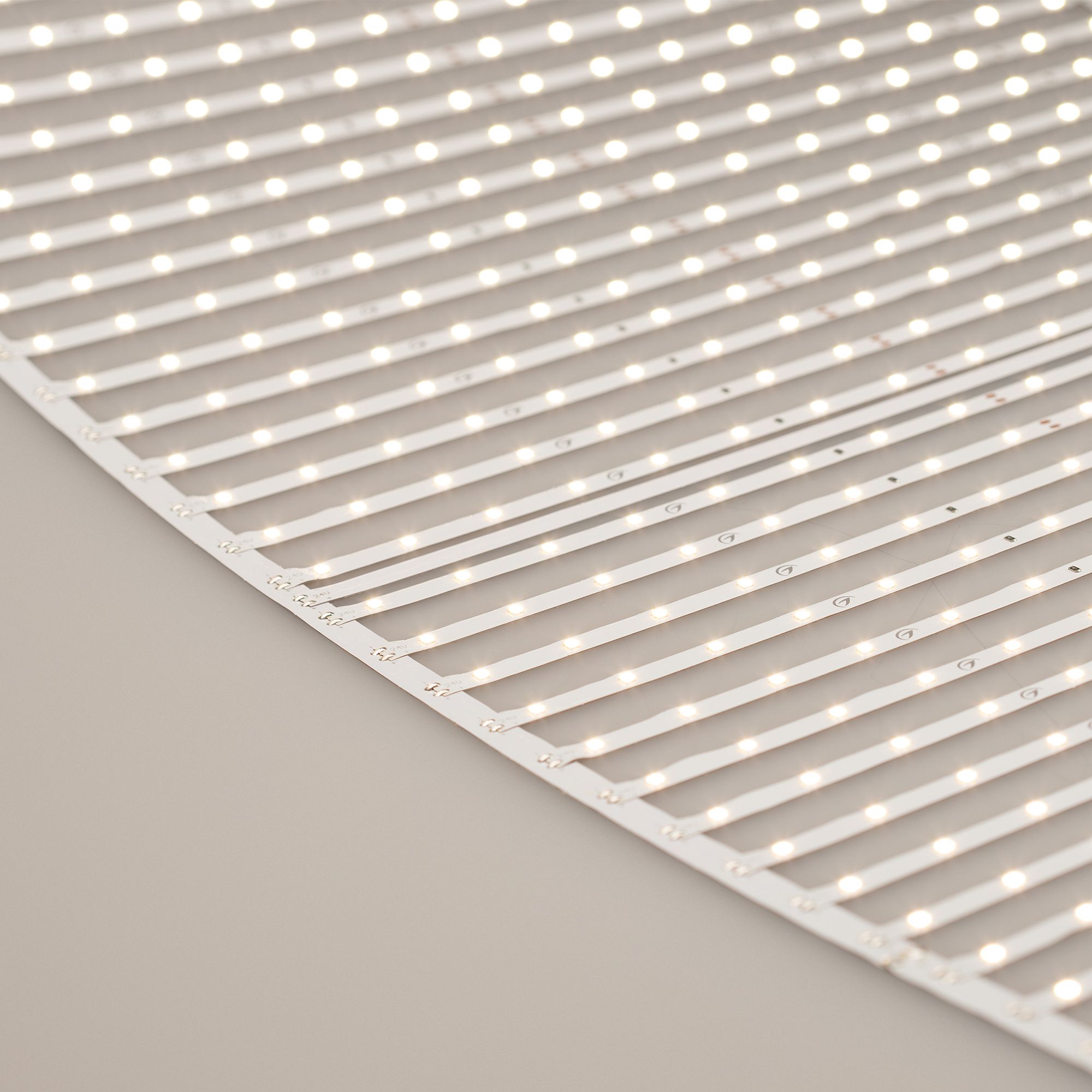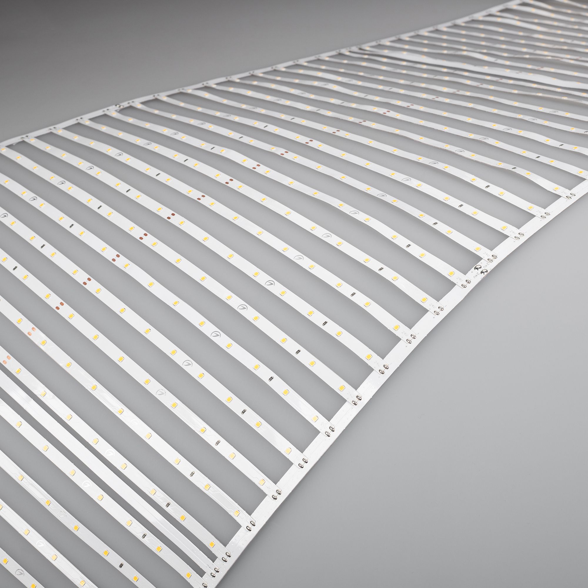 Лента-сеть из шести сегментов по 20 линий, соединенных между собой платой длиной 500 мм, расстояние между центрами линий 25мм, общая длина сети 3000 мм, светодиоды smd 2835, 640 шт/м (1920шт на 3м), белая плата 8мм, скотч 3М. Цвет ДНЕВНОЙ 3900-4000K Напряжение питания 24В, мощность 43,6 Вт/м (130,8 Вт на 3м), угол 120° CRI>85. Шаг резки 500 мм. Размеры сегмента 500х410х1,2 мм (320 светодиодов) Размер 3000х410х1,2 мм. Цена за 1 м. Дополнительный теплоотвод не обязателен.