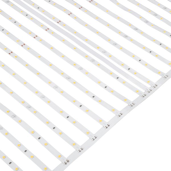 Светодиодная лента-сеть из шести сегментов по 20 линий, соединенных между собой платой-проводником длиной 500 мм, расстояние между центрами соседних линий 25мм, общая длина сети 3000 мм, светодиоды smd 2835, 640 шт/м (1920шт на 3м), белая плата 8мм, скотч 3М. Цвет ТЕПЛЫЙ 2700-3200K Напряжение питания 24В, мощность 43,6 Вт/м (130,8 Вт на 3м), угол 120° CRI>85 Световая эффективность 150 лм/Вт. Шаг резки 500 мм. Размеры сегмента 500х410х1,2 мм. (320 светодиодов) Размер ленты-сети 3000х410х1,2 мм. Дополнительный теплоотвод не обязателен.