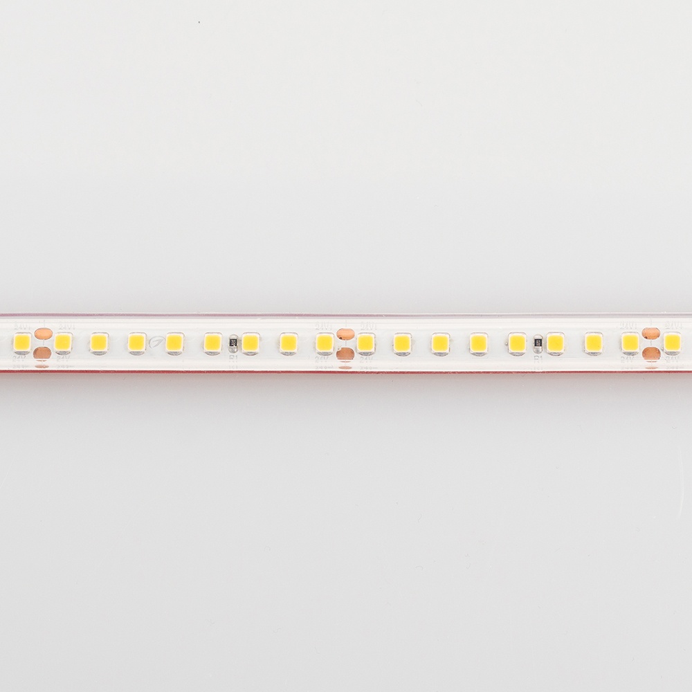 Герметичная светодиодная лента шириной 10 мм в силиконовой трубке (экструзия, без сдвига ЦТ) с высокой степенью пылевлагозащиты IP67. Светодиоды SMD 2835 (160 шт/м) теплого белого цвета свечения (2600 - 2800 К), индекс цветопередачи CRI>85. Мощность 12 Вт/м, напряжение питания 24 В. Минимальный отрезок 50 мм (8 светодиодов). Освещение интерьеров и создание декоративной подсветки. Оформление наружной рекламы и витрин. Использование в помещениях и на улице.