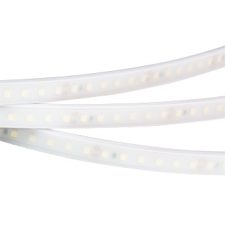 Герметичная светодиодная лента серии LUX шириной 11 мм в матовой силиконовой трубке с высокой степенью пылевлагозащиты IP66. Питание 24 В, мощность 9.6 Вт/м. Светодиоды 2х SMD 3528 теплого белого цвета свечения (2700 - 2900 К) с плотностью расстановки 120 шт/м. Освещение интерьеров и создание декоративной подсветки. Оформление наружной рекламы и витрин. Использование в помещениях или на улице.