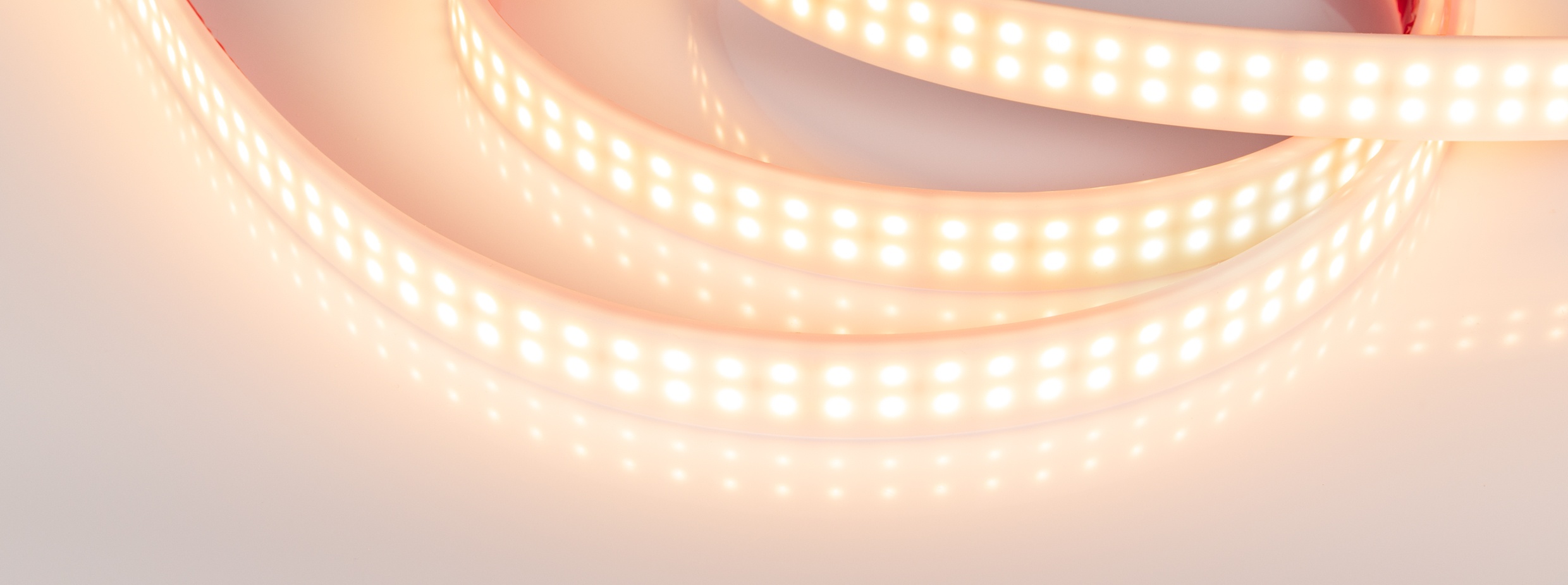 Герметичная двухрядная светодиодная лента шириной 17.5 мм в матовой силиконовой трубке с высокой степенью пылевлагозащиты IP66. Светодиоды SMD 3528 (240 шт/м) теплого белого цвета свечения (2600–2800 К). Индекс цветопередачи CRI>85. Мощность 19.2 Вт/м, напряжение питания 24 В. Минимальный отрезок 50 мм (12 светодиодов). Может использоваться с любыми алюминиевыми профилями. Встроенные линии света для основного освещения. Создание накладных и подвесных светильников. Возможно использование во влажных помещениях и на улице.