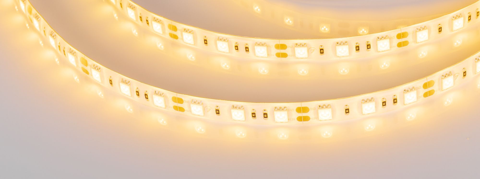 Герметичная светодиодная лента LUX шириной 10 мм с высокой степенью пылевлагозащиты IP65 (силикон сверху). Светодиоды SMD 5060 (60 шт/м) с желтым цветом свечения. Мощность 14.4 Вт/м, напряжение питания 12 В. Минимальный отрезок 50 мм (3 светодиода). Освещение интерьеров и создание декоративной подсветки, оформление рекламных конструкций и витрин. Возможно использование во влажных помещениях.