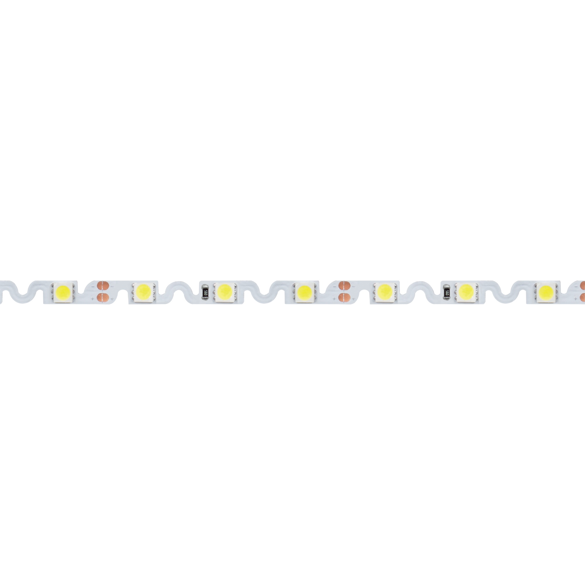 Светодиодная гибкая лента шириной 6.1 мм. Легко изгибается на плоскости за счет фигурной платы в форме волны. Светодиоды SMD 5060 (48 шт/м) желтого цвета свечения. Мощность 11.5 Вт/м, напряжение питания 12 В. Индекс цветопередачи CRI>85. Минимальный отрезок 62.5 мм (3 светодиода). Подходит для установки в криволинейные пазы. Применяется для подсветки изогнутых поверхностей, букв, витрин и ниш.