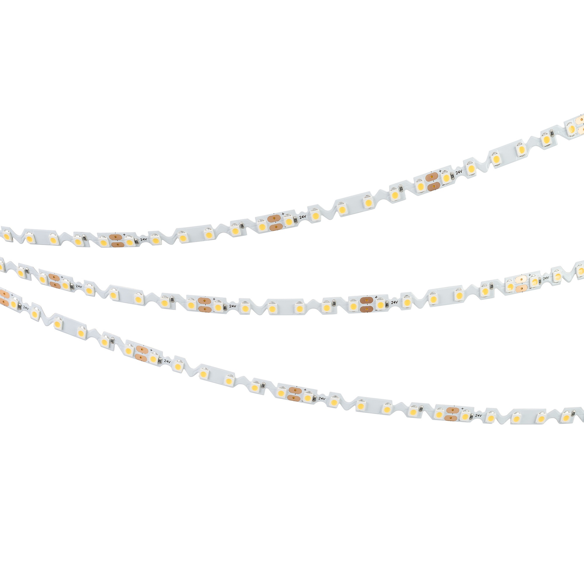 Светодиодная лента RZ серии A120 шириной 6 мм, мощностью 9.6 Вт/м, со специальной формой платы в виде волны позволяет изгибать ленту на плоскости. Максимальный радиус изгиба на плоскости 30 мм. Вертикальный радиус изгиба 30 мм. Напряжение питания 24 В. Светодиоды SMD 2835 (120 шт/м) теплого свечения (3500K). Высокий индекс цветопередачи CRI>90. Минимальный отрезок 50 мм (6 светодиодов). Подходит для установки в криволинейные пазы. Подсветка букв, ниш, витрин, вывесок, криволинейных форм. Обязательна установка на профиль.