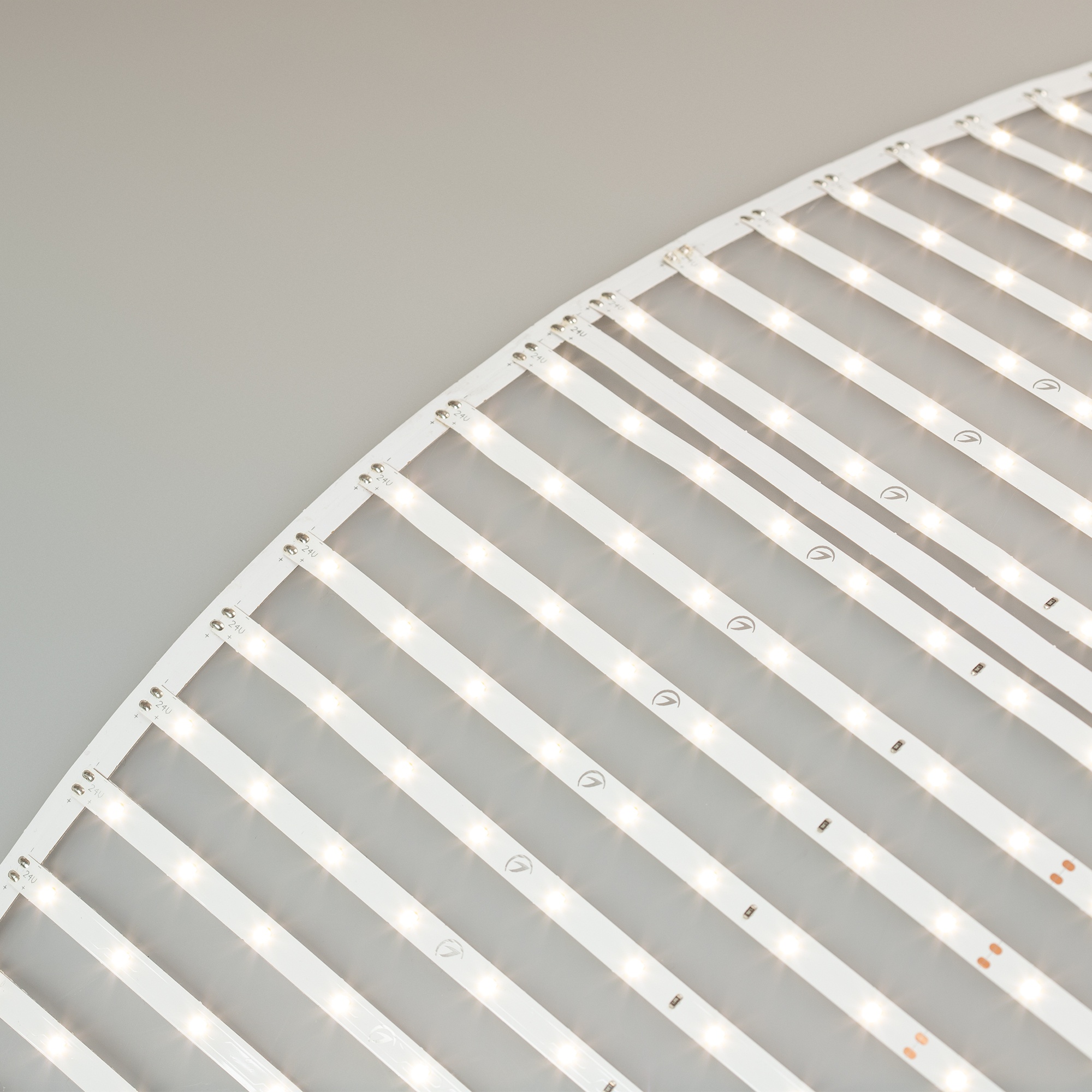 Лента-сеть из 6 сегментов по 20 линий, соединенных между собой платой. Общая длина сети 3000 мм, что позволяет делать подсветку больших поверхностей: потолков, стен, ниш, колонн. Светодиоды SMD 2835 (640 шт/м) дневного белого цвета свечения (3900–4000 К) с индексом цветопередачи CRI>85 и высокой световой эффективностью. Мощность 43.6 Вт/м, напряжение питания 24 В. Шаг резки 500 мм. Быстрый монтаж на основу-скотч 3М и простое подключение. Дополнительный теплоотвод не обязателен.