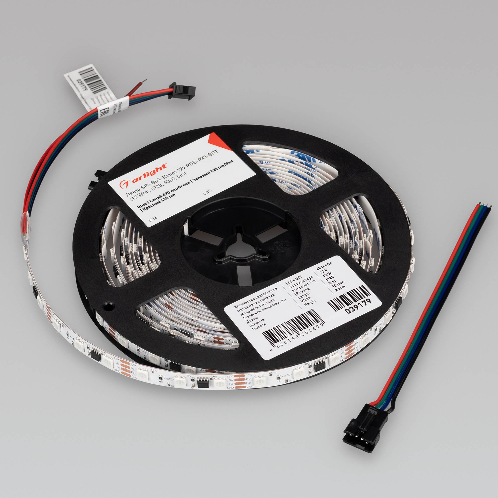 Характеристики - Лента SPI-B60-10mm 12V RGB-PX3-BPT (12 W/m, IP20, 5060, 5m) (Arlight, бегущий огонь)