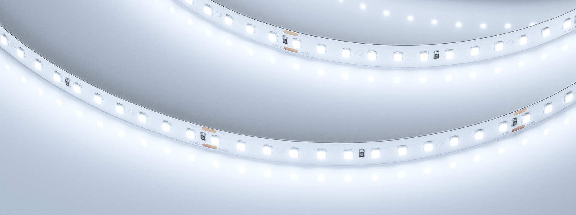 Светодиодная лента UL серии A120 с подключением до 30 м с одной стороны. Гарантия 7 лет. Напряжение питания 48 В, мощность 10 Вт/м. Светодиоды SMD 2835, 120 шт/м, белого цвета свечения 6000K. Высокий индекс цветопередачи CRI>90 обеспечивает точное восприятие цветов и оттенков при освещении любых жилых и коммерческих интерьеров. Предназначена для декоративной подсветки интерьеров, ниш, плинтусов. Позволяет организовать закарнизную подсветку на протяженных участках. Минимальный отрезок 100 мм, 12 светодиодов. Обязательна установка на алюминиевый профиль для обеспечения теплоотвода.