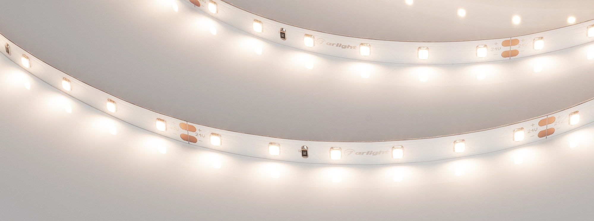 Универсальная светодиодная лента UL серии A60 с гарантией 7 лет, шириной 8 мм, мощностью 4.8 Вт/м. Напряжение питания 24 В. Светодиоды SMD 2835, 60 шт/м, теплого цвета свечения (3500K). Высокий индекс цветопередачи CRI>90 обеспечивает точное восприятие цветов при освещении любых интерьеров. Минимальный отрезок 100 мм (6 светодиодов). Универсальное применение для организации декоративной подсветки жилых и коммерческих помещений, подсветки интерьеров, потолочных ниш, лестниц, ступеней, полок, натяжных потолков, витражей, рекламных конструкций.