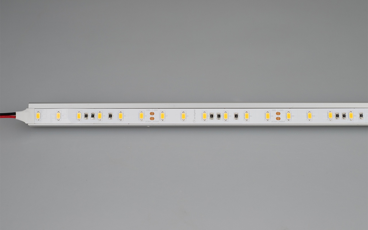 Сверхмощная лента ULTRA шириной 12 мм с большим световым потоком и индексом цветопередачи CRI>85. Светодиоды SMD 5630 (60 шт/м) с цветовой температурой 3800–4200 К. Мощность 30 Вт/м, напряжение питания 24 В. Минимальный отрезок 100 мм (6 светодиодов). Только для создания светильников из алюминиевого профиля.