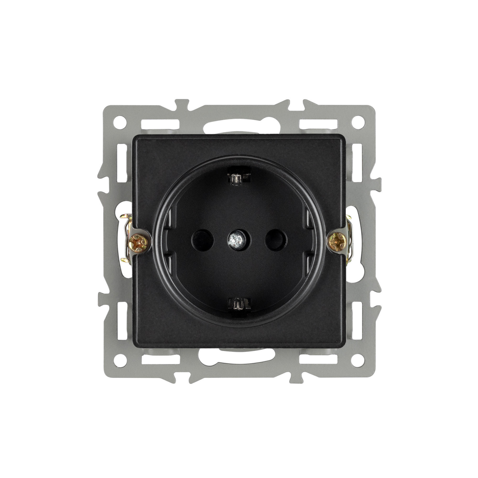 Механизм розетки с заземлением на 1 пост, совместим с рамками имеющими круглый вырез серии GLARE/PRESTO. Скрытый тип монтажа позволяет гармонично встроить в интерьер любого современного дизайн-проекта. Видимая часть механизма выполнена из высококачественного тугоплавкого пластика черного цвета. Контактная часть присоединяется при помощи винтовых зажимов, а усиленные монтажные лапки надежно фиксируют механизм в установочном подрозетнике. Степень защиты IP20 допускает использование устройства во влажных помещениях, с соблюдением требований эксплуатации.