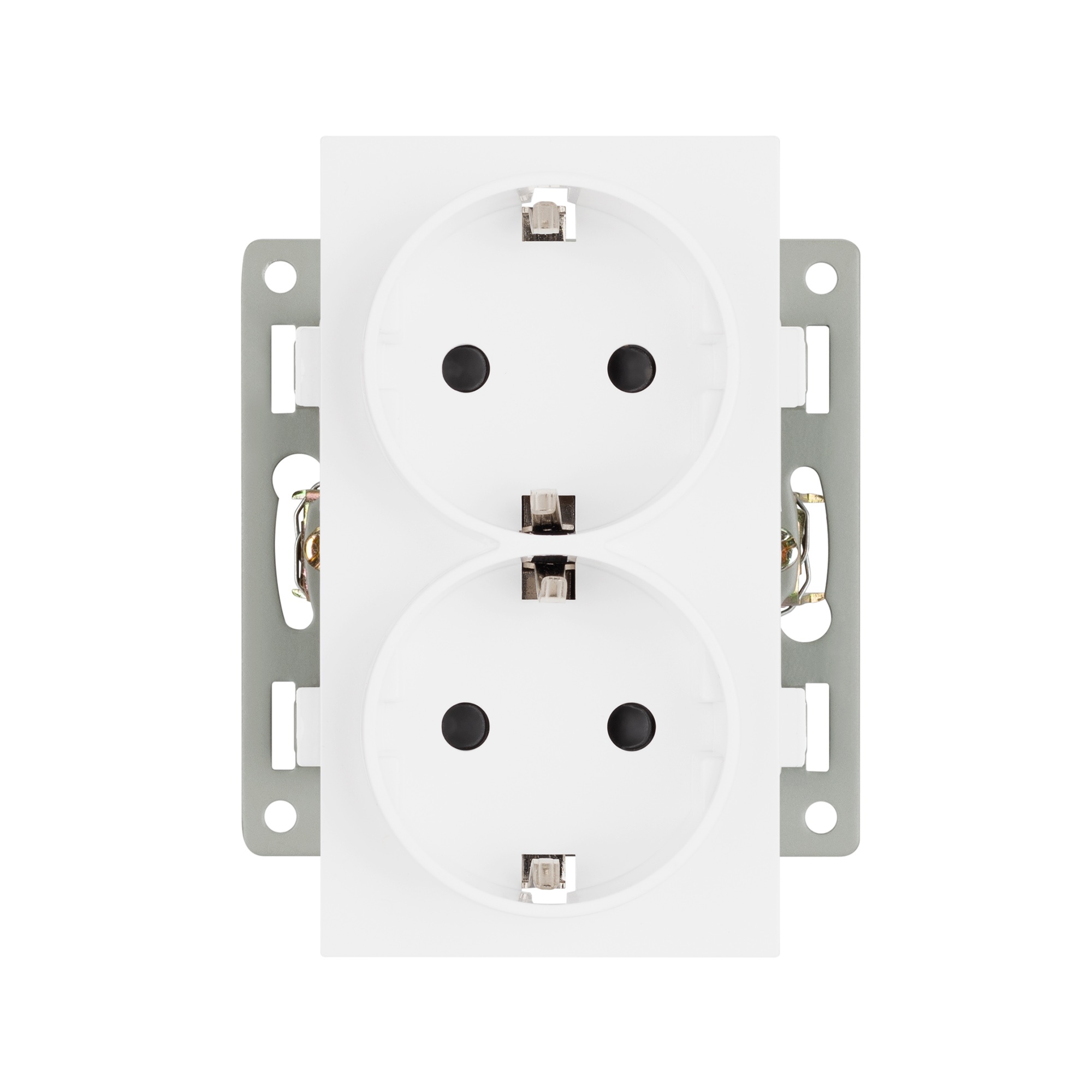 Механизм сдвоенной розетки с заземлением на 2 поста, совместим с рамками вертикального ориентирования монтажа серий VERSA/GLARE/PRESTO. Накладной тип монтажа позволяет с легкостью произвести монтаж/замену. Видимая часть механизма выполнена из высококачественного тугоплавкого пластика белого цвета. Контактная часть присоединяется при помощи винтовых зажимов, а усиленные монтажные лапки надежно фиксируют механизм в установочном подрозетнике.