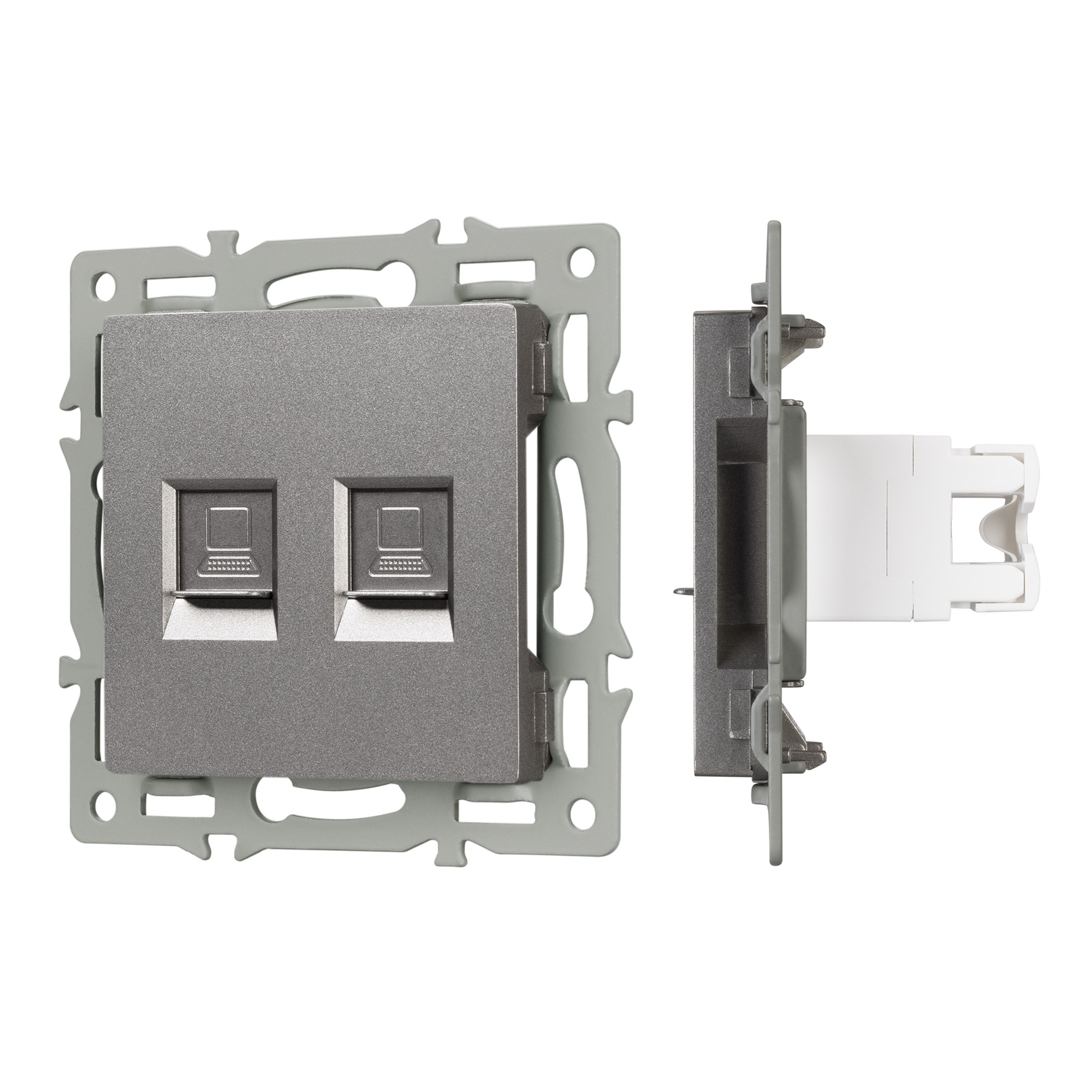 Характеристики - Механизм компьютерной розетки двойной SCT-MPC2-PL-GR (RJ-45, CAT6) (Arlight, -)