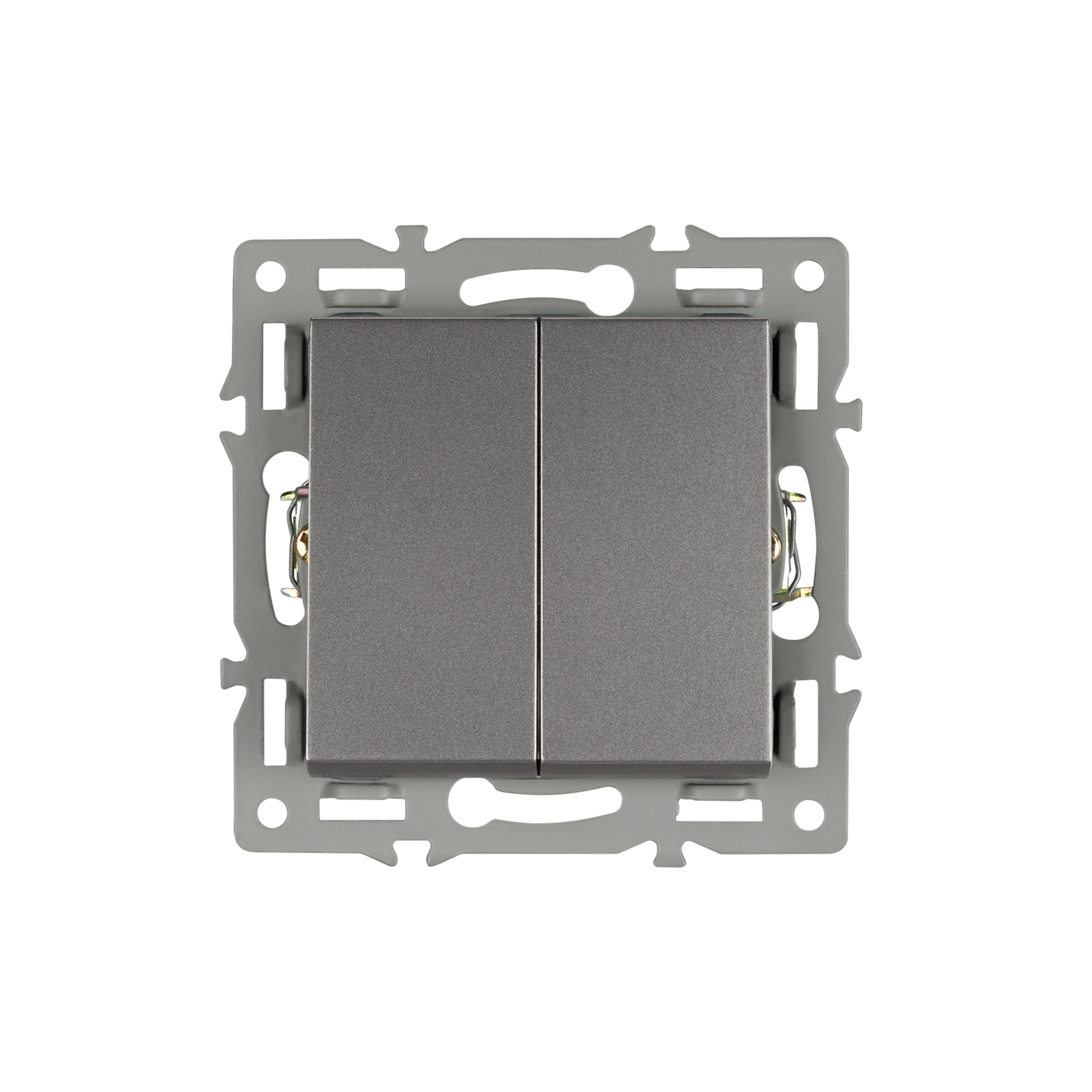 Механизм выключателя света двухклавишный на 1 пост, совместим с рамками серий VERSA/GLARE/PRESTO. Скрытый тип монтажа позволяет гармонично встроить в интерьер любого современного дизайн-проекта. Видимая часть механизма выполнена из высококачественного тугоплавкого пластика серого цвета. Контактная часть присоединяется при помощи винтовых зажимов, а усиленные монтажные лапки надежно фиксируют механизм в установочном подрозетнике. Степень защиты IP20 допускает использование устройства во влажных помещениях, с соблюдением требований эксплуатации. Непроходная система подключения, позволяет управлять освещением из одной точки.