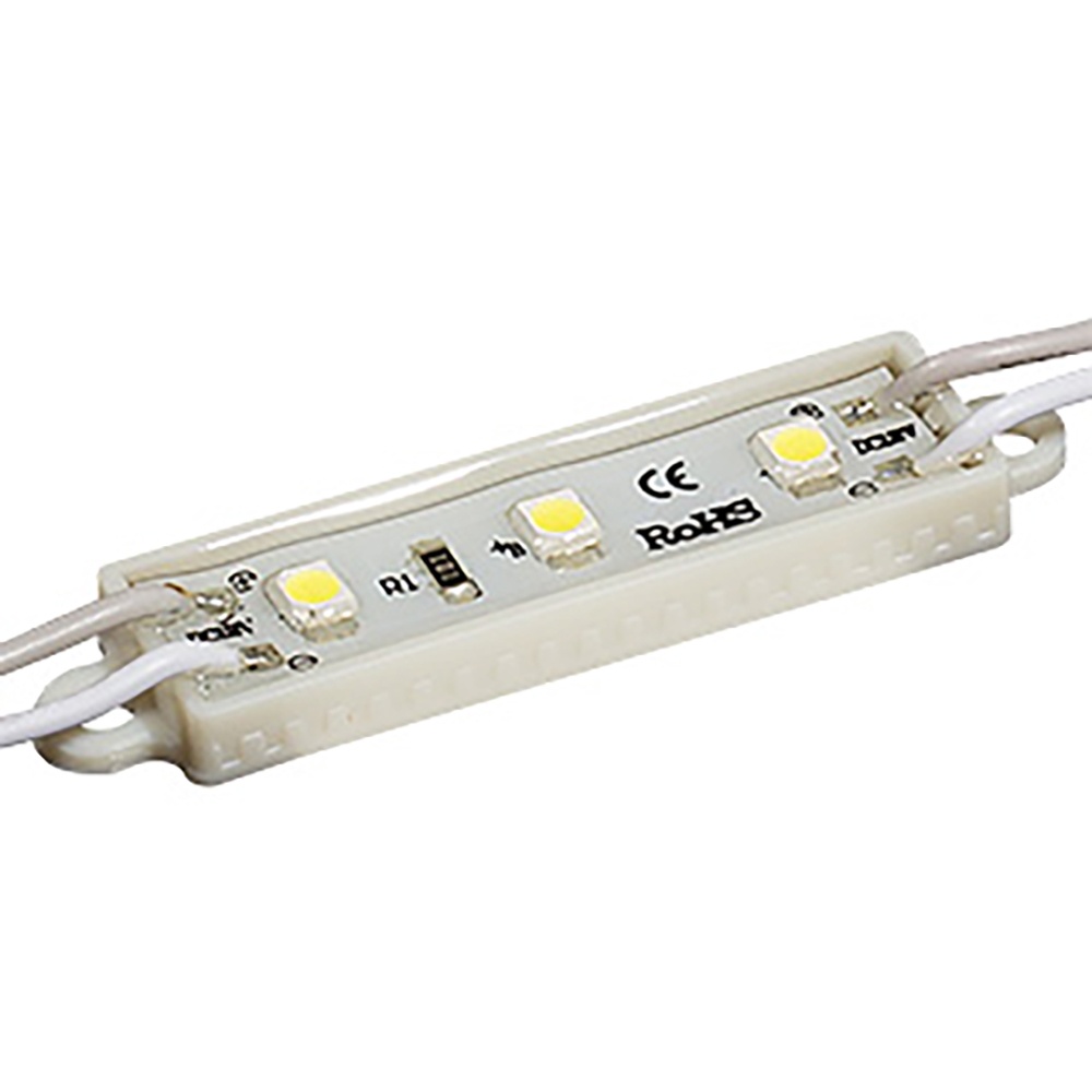Модуль PVC, 3 светодиода smd 3528. Цвет Зелёный, угол 120°. На проводе 20шт, между модулями 48мм. Питание 12В, мощность 0.3W. Габариты LxHxW: 36х12х4 мм.