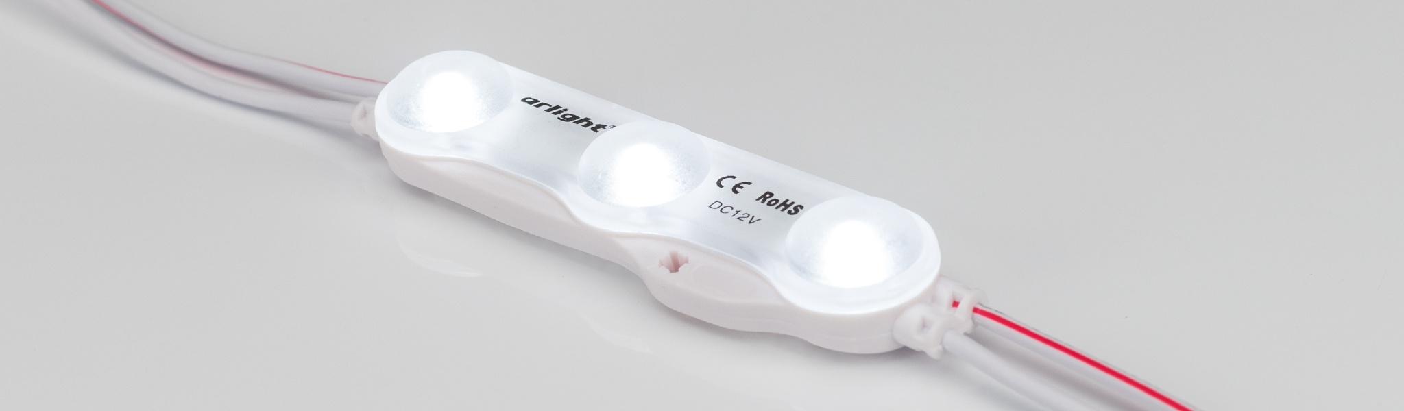 Герметичный светодиодный модуль IP65, БЕЛЫЙ 6500-7000 К, напряжение 12 В, мощность 1.5 Вт, св. поток 135 лм, 3 светодиода SMD 2835, угол 160°. 20 шт на проводе, расстояние между центрами модулей 200 мм, длина провода между модулями 128 мм, рекомендуемая глубина установки 120–250 мм. Размер 72х18.5х10 мм. Гарантия 3 года.