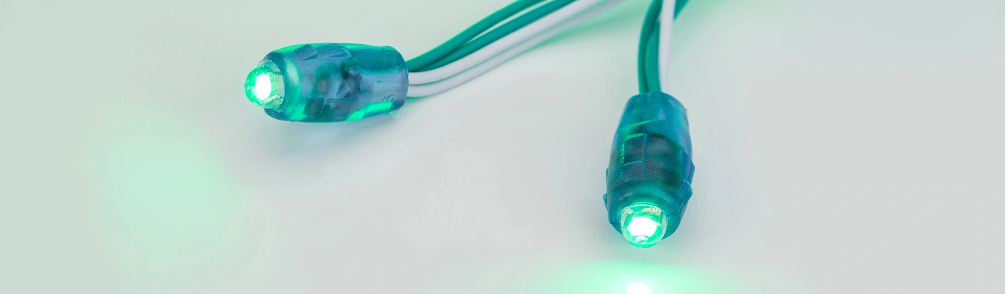 Герметичный светодиодный модуль IP65, ЗЕЛЕНЫЙ 525 нм, напряжение 5 В, мощность 0.12 Вт, светодиод DIP 7 мм, угол 80°. 50 шт на проводе, расстояние между модулями 70 мм. Размер Ø12×26 мм. Не рекомендуется применять в условиях прямого попадания влаги. Гарантия 1 год.