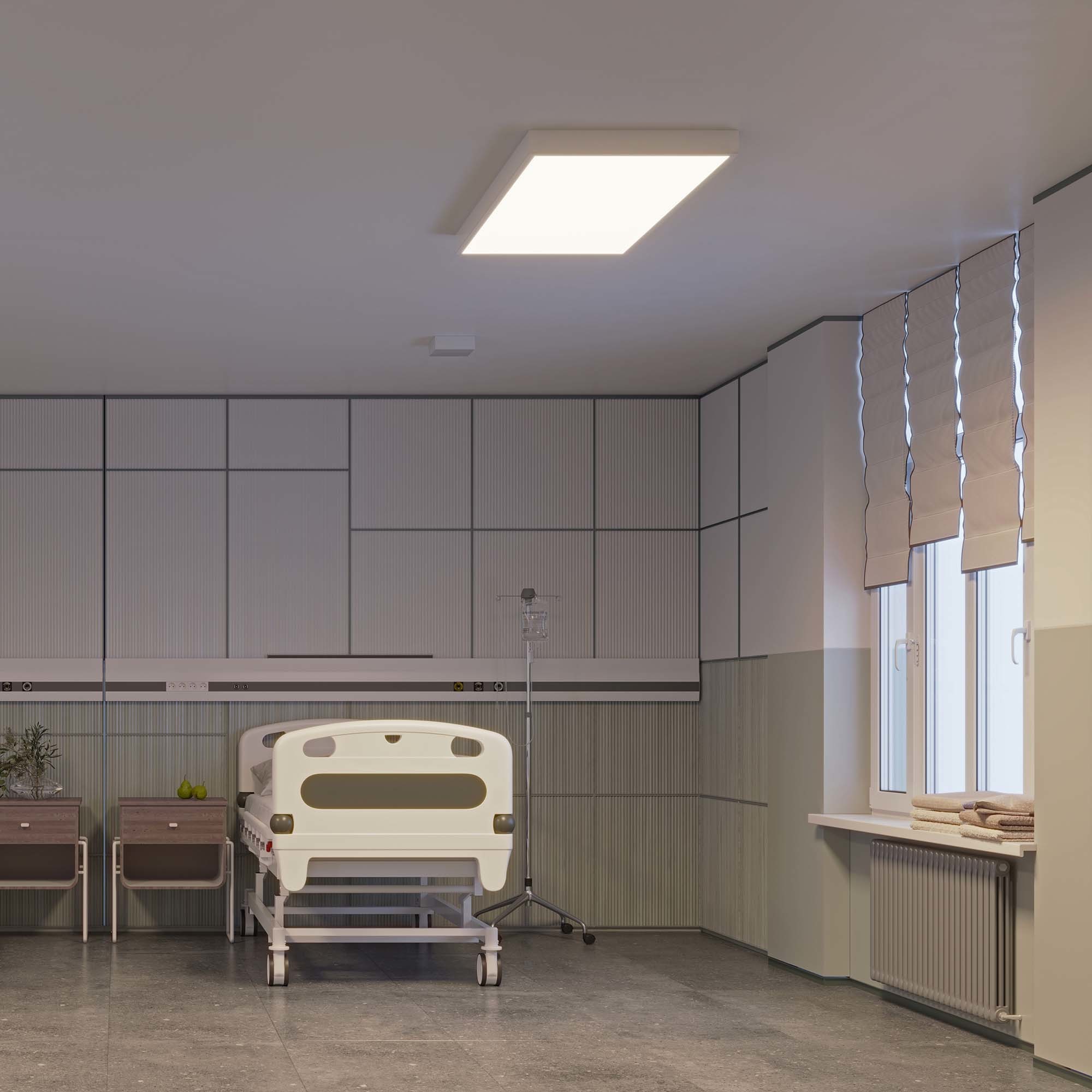Светодиодный накладной светильник с блоком аварийного питания EMERGENCY мощностью 53 Вт, с белым цветом свечения (6000К), световым потоком 4800 лм, высокой световой эффективностью 91 лм/Вт предназначен для создания яркого и качественного освещения в интерьере. Обеспечивает отличную передачу цветов, а угол освещения в 120 градусов подходит для основного освещения. Матовый экран светильника из полистирола создает равномерный поток света без видимости точек светодиодов. Тонкий прямоугольный корпус из окрашенного алюминия, возможность накладного монтажа способствуют широкому применению светильника в различных помещениях. Наличие встроенного блока аварийного питания позволяет безопасно и быстро подключать светильник напрямую к сети 230В, а в автономном режиме поддерживать работу до 1,5 ч. Защита корпуса от пыли IP40 применима для помещений, где отсутствует контакт с водой. Пульсация менее 5 процентов обеспечивает комфортное освещение без мерцания.