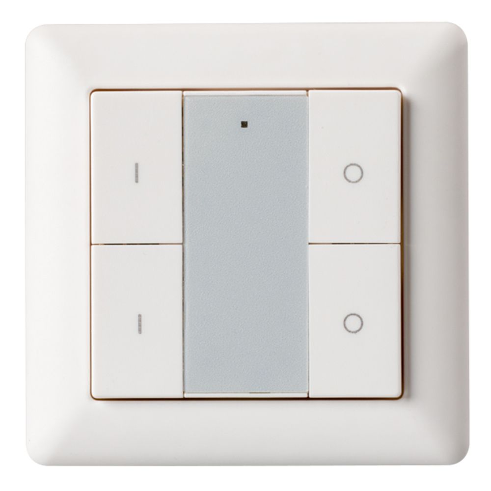 2-зонный накладной диммер-выключатель, работает по радиоканалу (короткое нажатие - вкл, длинное нажатие - диммир-е). Используется с контроллерами серии SR-1009х. Питание - литиевая батарейка 3V CR2450. К одному контроллеру SR-1009х можно привязать неск. панелей.
