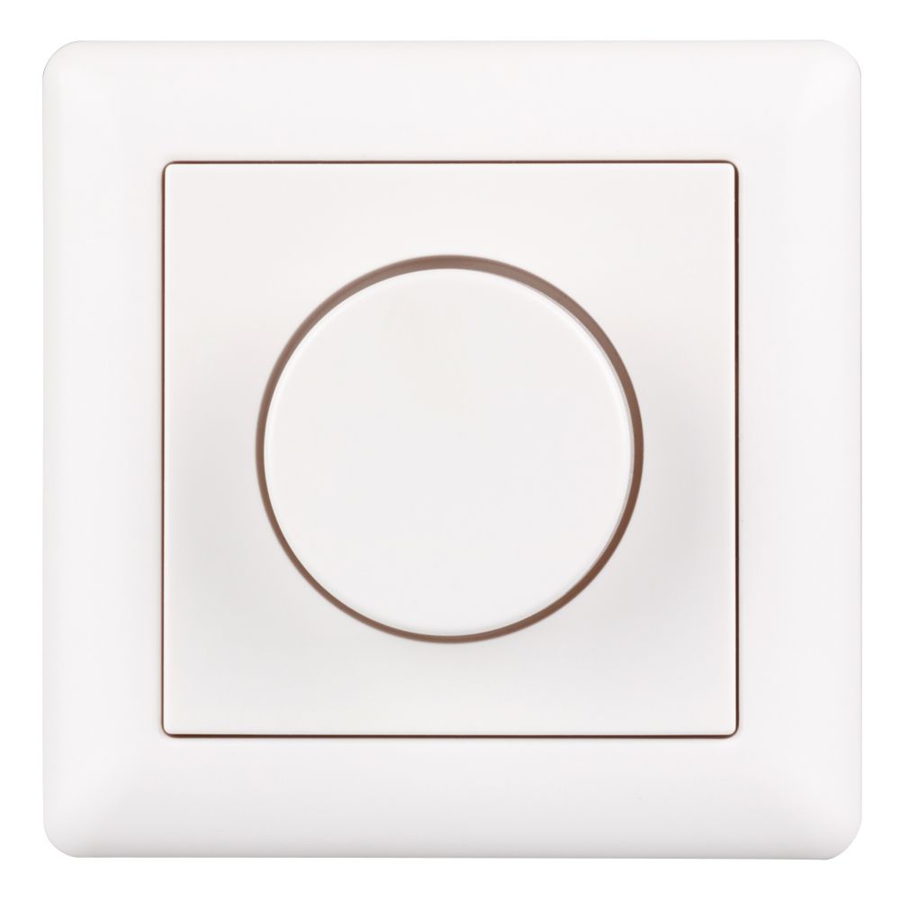 Встраиваемая роторная панель белого цвета для управления диммерами серий SR, Excellent. Позволяет осуществлять включение/выключение источников света, реуглировку их яркости. Питание панели осуществляется от 230В. Габариты составляют 72x72x32 мм, корпус белого цвета, лицевая часть рамки панели - пластик.