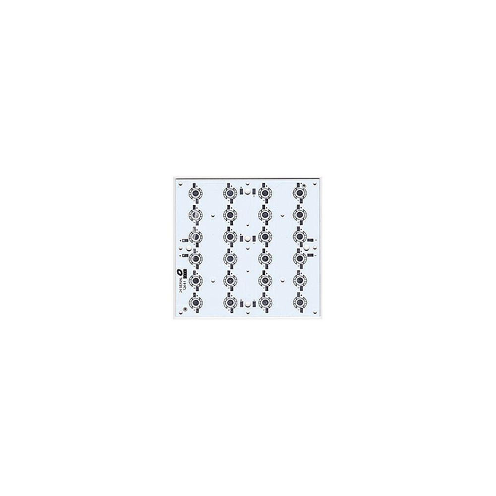 Алюминиевая плата 120x120-24E SERIAL (24S, 724-61) квадратной формы с размерами 120х120мм, белого цвета для 24-х (подключение 24S, последовательно) мощных светодиодов Emitter. Необходима для эффективного отвода тепла от источника света, что ведет к увеличению срока службы светодиодов и стабильности световых характеристик.