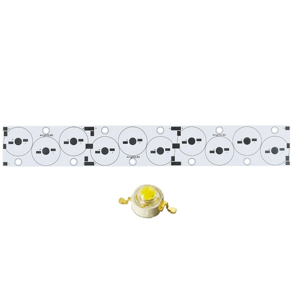 Алюминиевая плата 240x34-10Е Emitter (3x3x4 LED, SL80) прямоугольной формы с размерами 240х34мм, для 10-ти одноцветных светодиодов Emitter (подключение последовательно). Подходит для использования с профилями SL80. Необходима для эффективного отвода тепла от источника света, что ведет к увеличению срока службы светодиодов и стабильности световых характеристик.