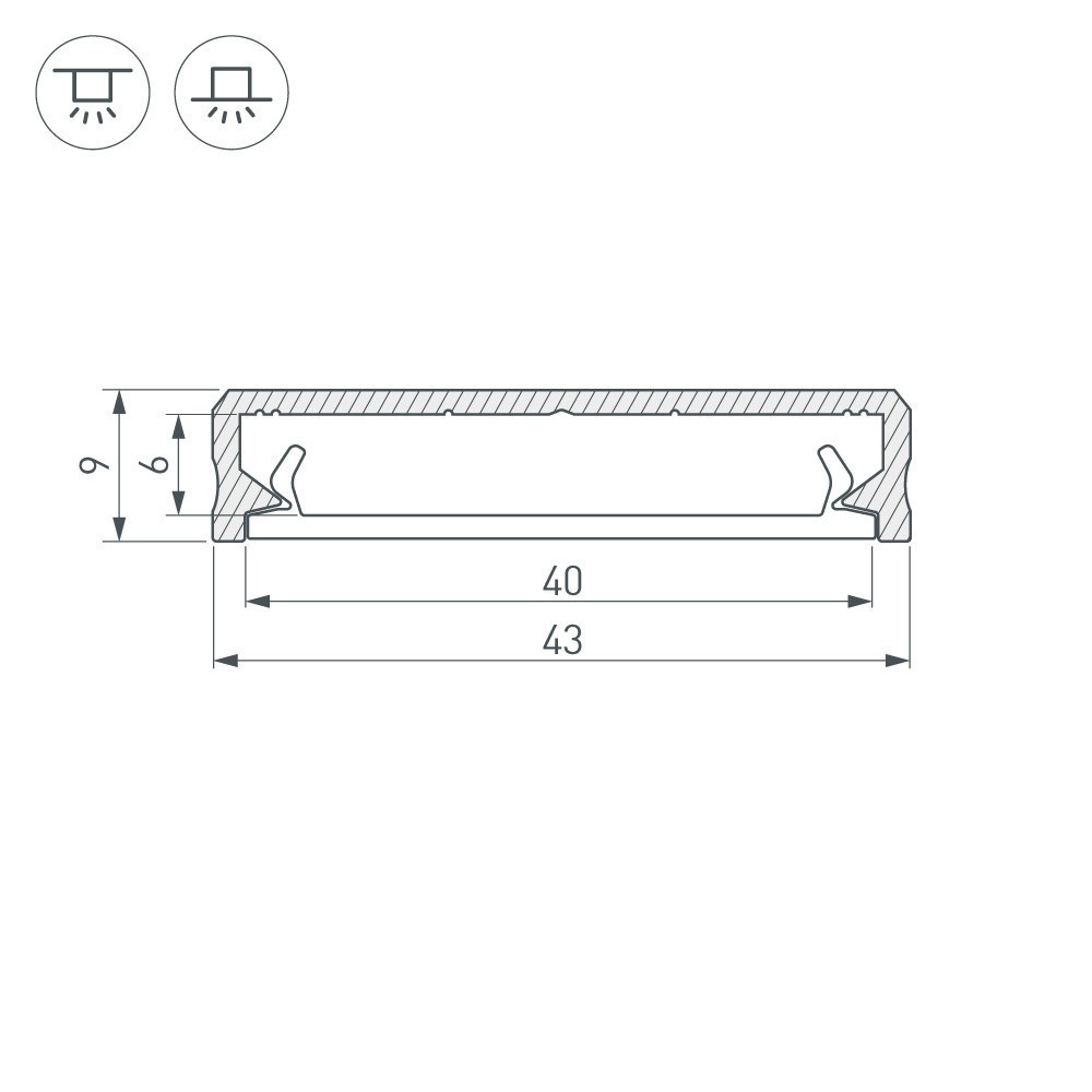 Алюминиевый светотехнический профиль для установки светодиодной ленты или линейки. Цвет серебристый. Длина 2020 мм, размер сечения 43х6 мм. Универсальный размер позволяет создать как декоративное, так и основное освещение. Монтаж осуществляется накладным способом. Рассеиваемая тепловая мощность 26 Вт/м позволяет подобрать источник света необходимой яркости и температуры свечения и реализовать самые интересные решения. Профиль охлаждает светодиодную ленту, продлевая срок её службы и сохраняя яркость, а также защищает от воздействия пыли, влаги и других внешних факторов. Высококачественное анодированное покрытие защищает профиль от внешних воздействий и коррозии.