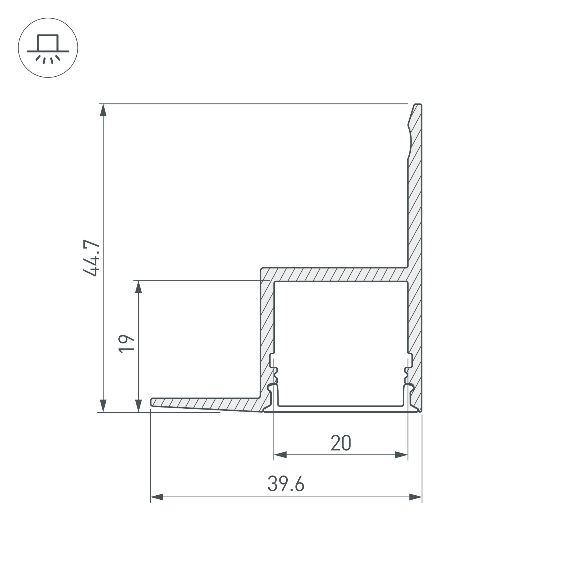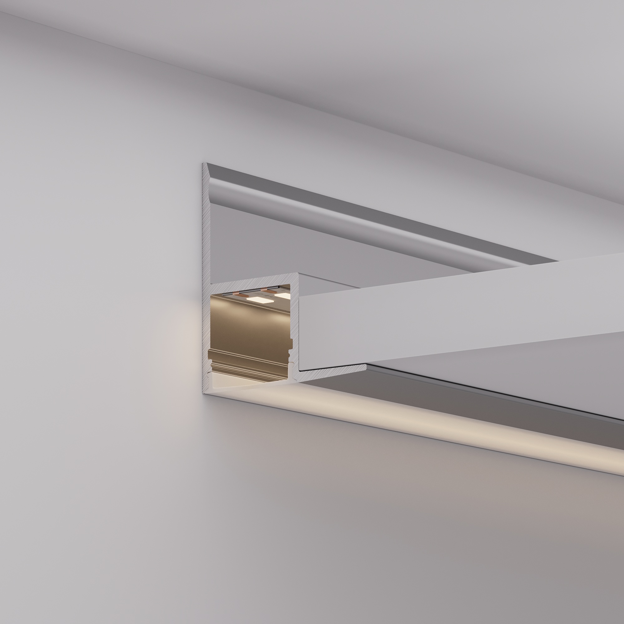 Встраиваемый профиль с накладным фланцем из анодированного алюминия для контурной подсветки ниш, карнизов и углов. Габаритные размеры профиля составляют 2000 мм в длину, 44,7 мм в ширину и 39,6 мм в высоту. Площадка для установки светодиодных лент позволяет использовать ленту шириной до 20 мм и мощностью до 37,4 Вт/м. Это обеспечивает гибкость в выборе светодиодных лент и создает потрясающие световые решения. Экраны, заглушки и другие аксессуары не включены в комплект и приобретаются отдельно. Цена указана за 1 метр профиля. Отличное решение для создания современных световых проектов.