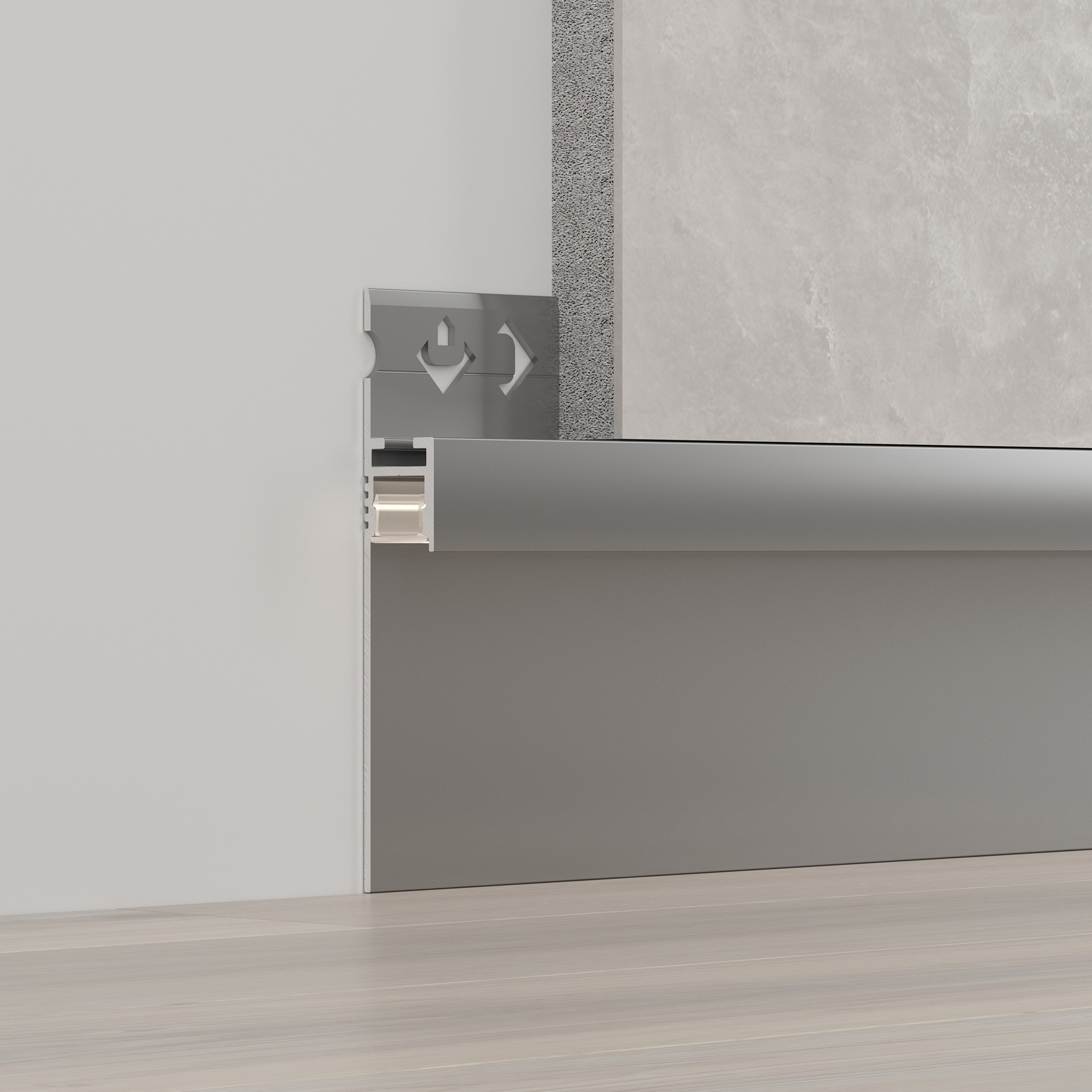 Алюминиевый анодированный профиль серебристого цвета, встраиваемый в гипсокартон под строительную отделку. Служит в качестве декоративной накладки для подсветки пола и стен, создавая мягкое свечение по периметру помещения, эффект "парящей" стены или потолка, не является плинтусом. Габаритные размеры профиля составляют 3000 мм в длину, 13,2 мм в ширину и 85 мм в высоту. Высота от пола до световой линии составляет 50 мм. Площадка для установки светодиодных лент позволяет использовать ленту шириной до 9,2 мм и мощностью до 33 Вт/м. Это обеспечивает гибкость в выборе светодиодных лент и создает потрясающие световые решения. Экран не включен в комплект и приобретается отдельно. Цена указана за 1 метр профиля. Отличное решение для создания современных световых проектов.