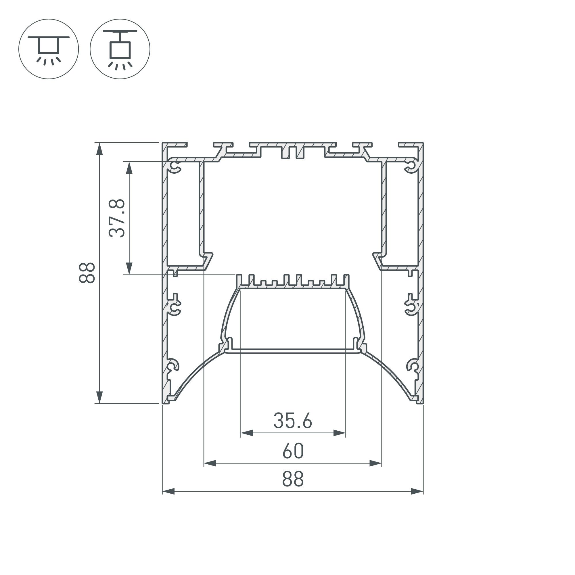 Характеристики - Профиль ARH-POWER-W88-COMFORT-2000 ANOD (Arlight, Алюминий)