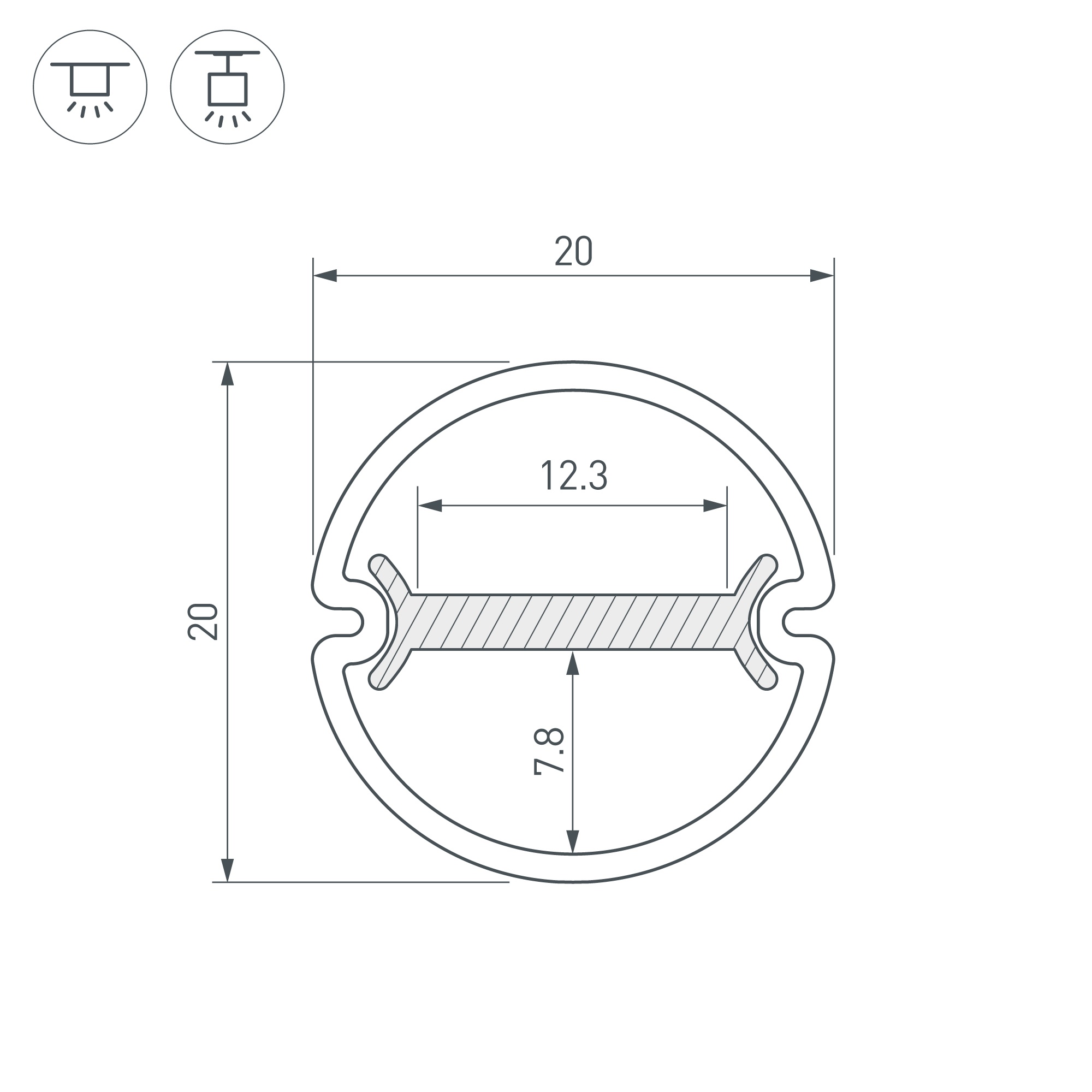 Характеристики - Профиль ARH-ROUND-D20-DUAL-2000 ANOD (Arlight, Алюминий)