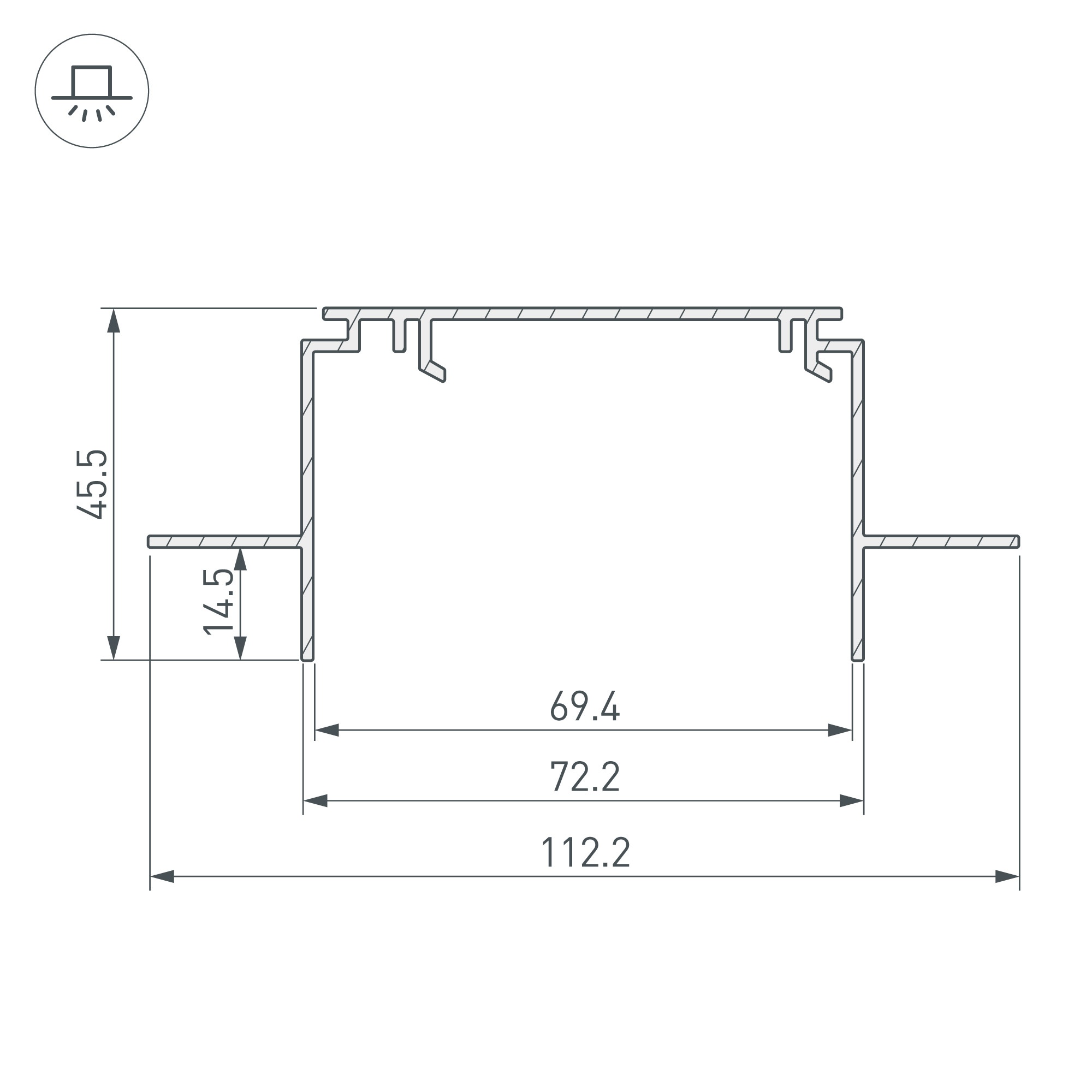 Алюминиевый профиль-держатель для установки в гипсокартон толщиной 12,5 мм профилей серии POWER-RW70F(-S) при помощи скоб TEK-POWER (арт. 019880). Габаритные размеры профиля составляют 2000 мм в длину, 112,2 мм в ширину и 45,5 мм в высоту. Заглушки и другие аксессуары приобретаются отдельно. Цена указана за 1 метр профиля.