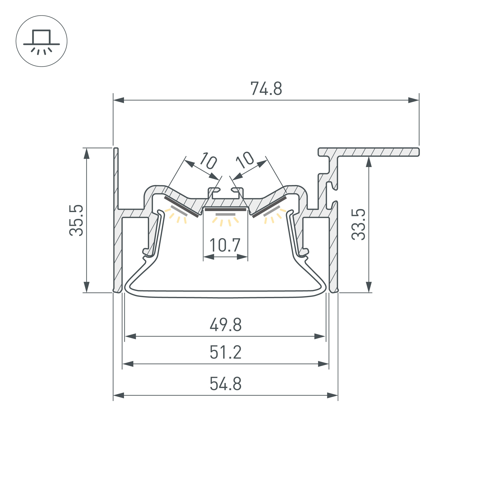 Встраиваемый алюминиевый профиль (боковая линия - монтаж к потолку) для дизайнерских решений «линии света» в натяжных потолках. Решение 2-в-1: служит каркасом для крепления натяжного потолка и профилем для установки светодиодной ленты. Габаритные размеры профиля составляют 2000 мм в длину, 75 мм в ширину и 36 мм в высоту. Площадки для установки светодиодных лент позволяют использовать ленты шириной до 10 мм и мощностью до 53,8 Вт/м (общая мощность для трех лент). Это обеспечивает гибкость в выборе светодиодных лент и создает потрясающие световые решения. Экран, заглушки и другие аксессуары не включены в комплект и приобретаются отдельно. Цена указана за 1 метр профиля. Отличное решение для создания современных световых проектов.