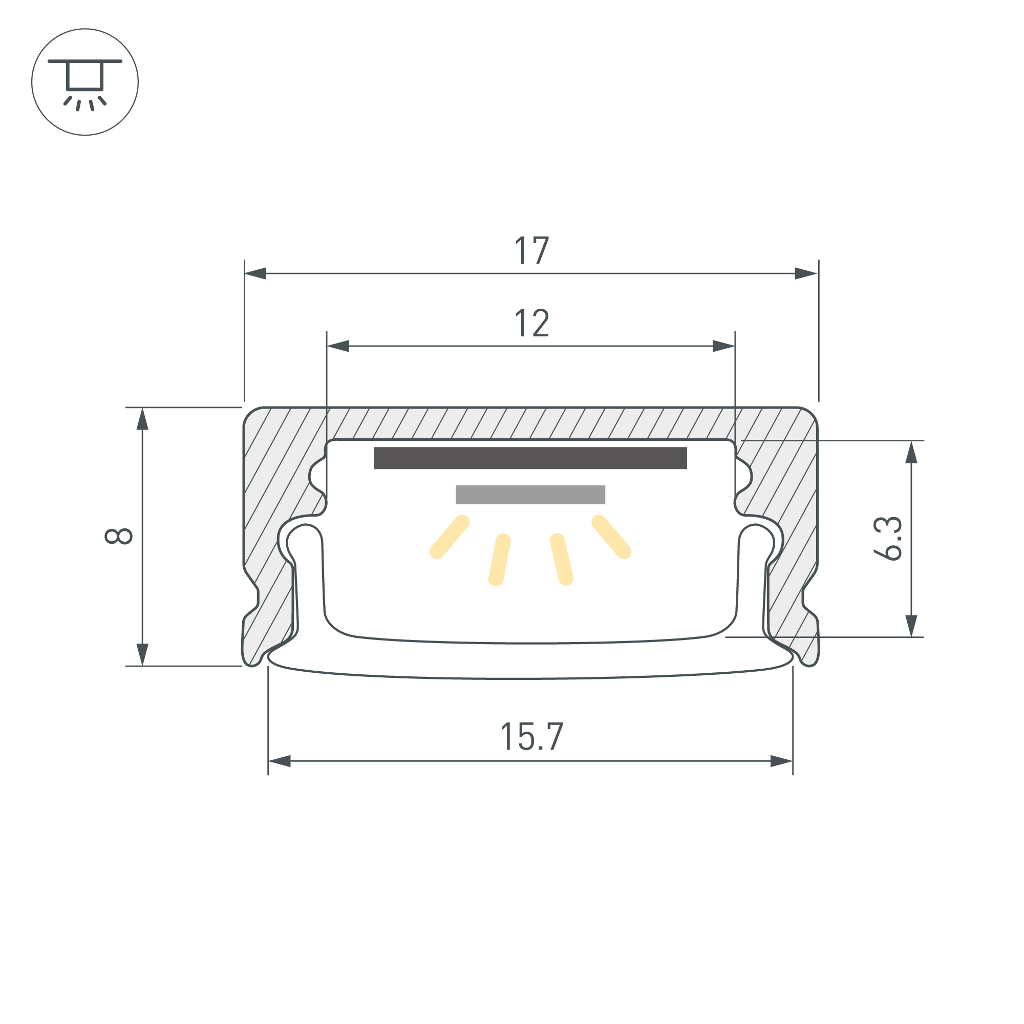 Накладной/подвесной профиль из анодированного алюминия для контурной подсветки элементов интерьера. Габаритные размеры профиля составляют 2000 мм в длину, 17 мм в ширину и 8 мм в высоту. Площадка для установки светодиодных лент позволяет использовать ленту шириной до 12 мм и мощностью до 13 Вт/м. Это обеспечивает гибкость в выборе светодиодных лент и создает потрясающие световые решения. Экраны, заглушки и другие аксессуары не включены в комплект и приобретаются отдельно. Цена указана за 1 метр профиля. Отличное решение для создания современных световых проектов.