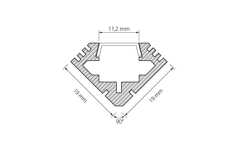 1,9м Алюминиевый анодированный угловой профиль, без экрана (отдельно), для светодиодной ленты, линейки. Может использоваться с матовым или прозрачным экраном (рассеивателем) держателями и заглушками. Размер 1900х19х19мм. Цена за 1 метр.